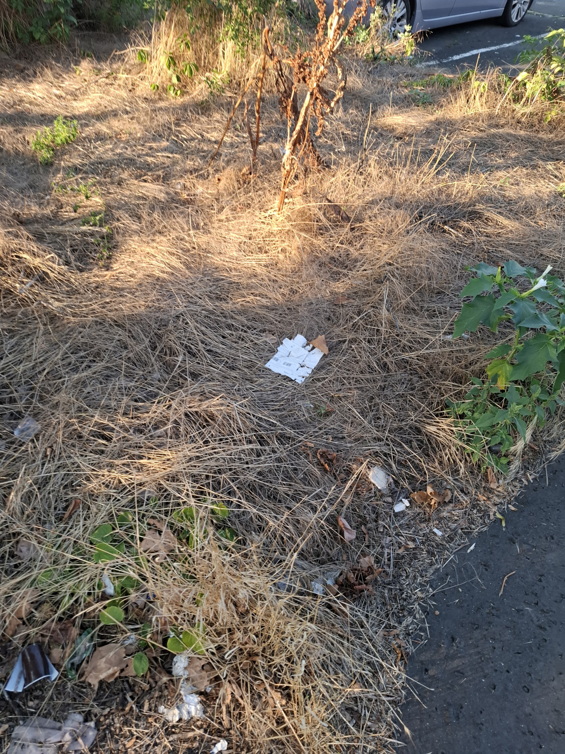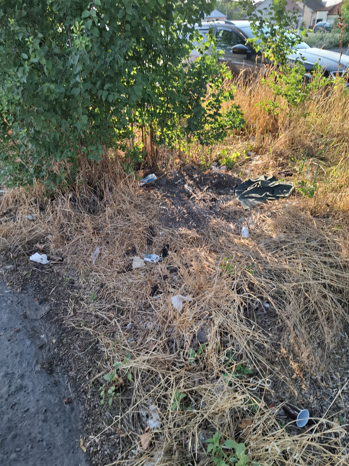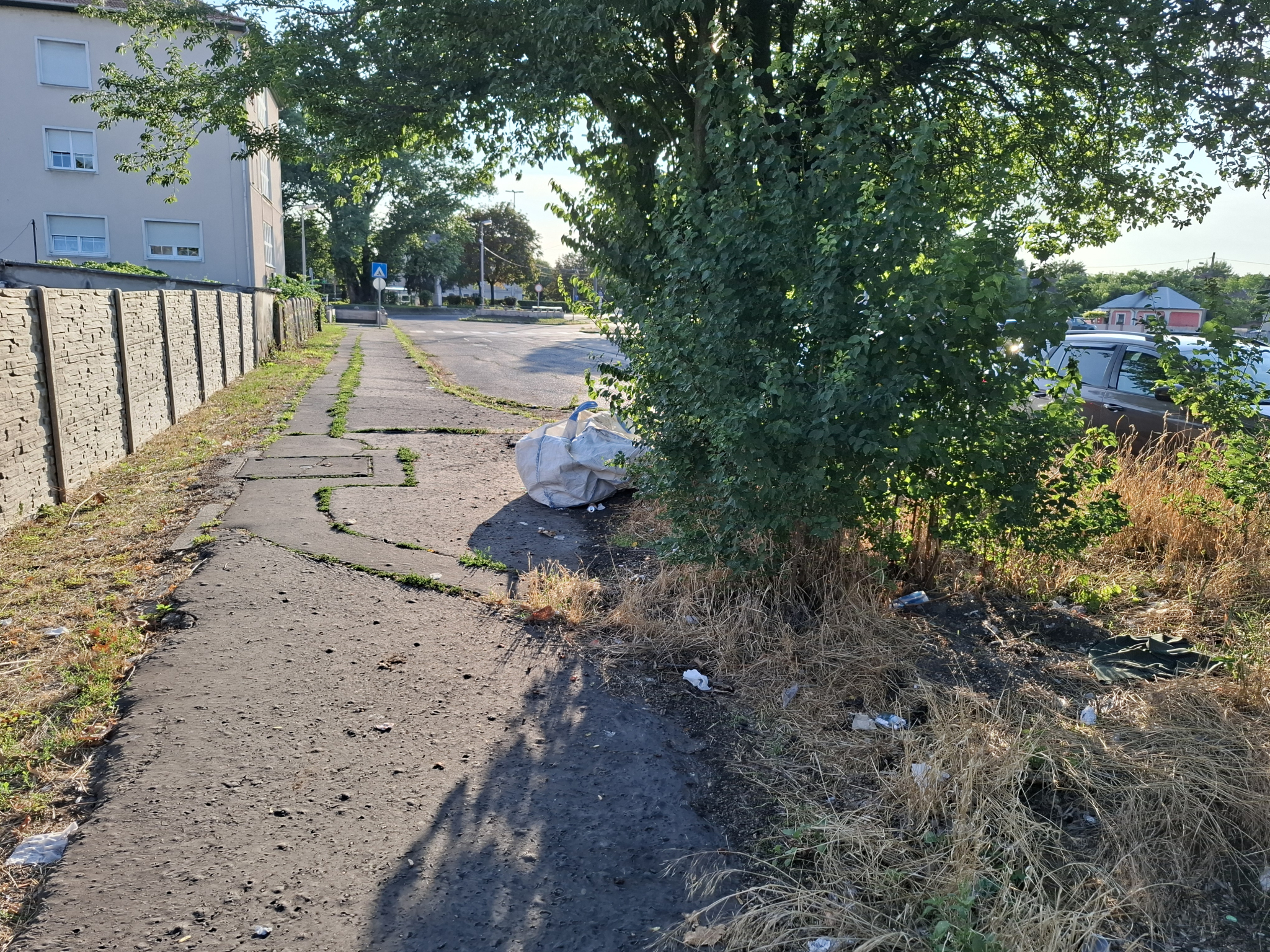 A füves részen sok szemét van szétszórva és egy bigbag zsák is van. Kérem takarítsák össze!