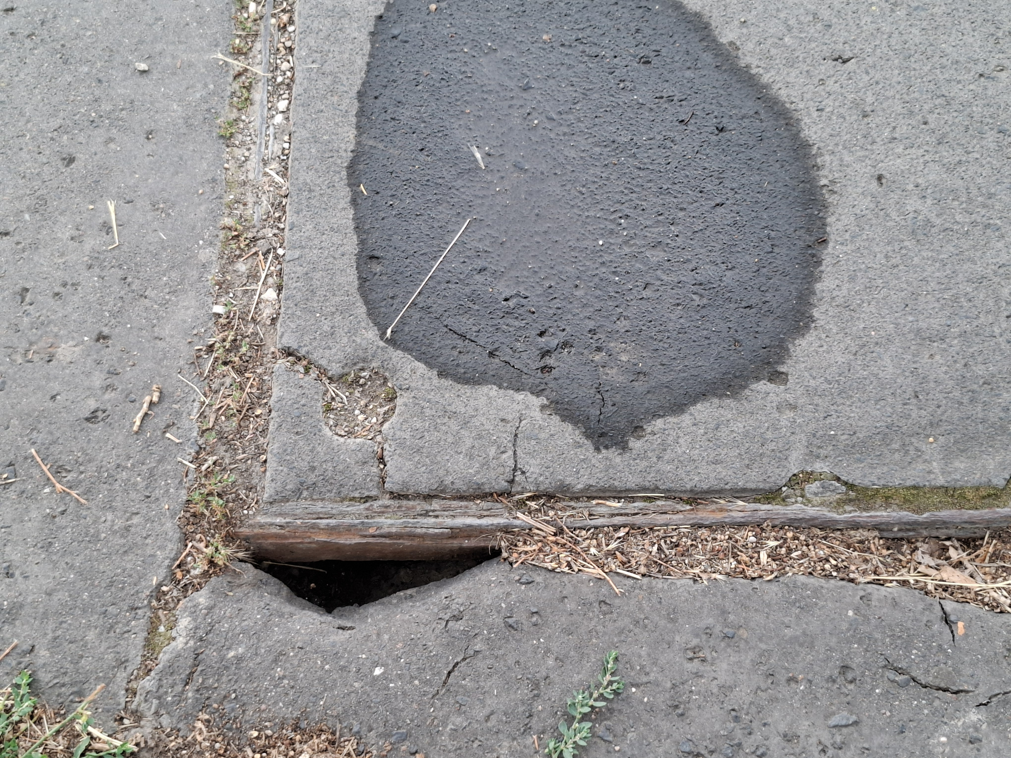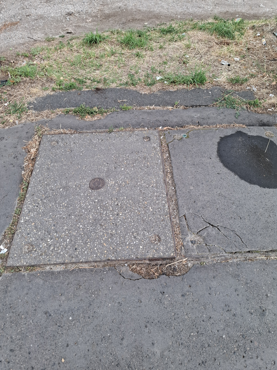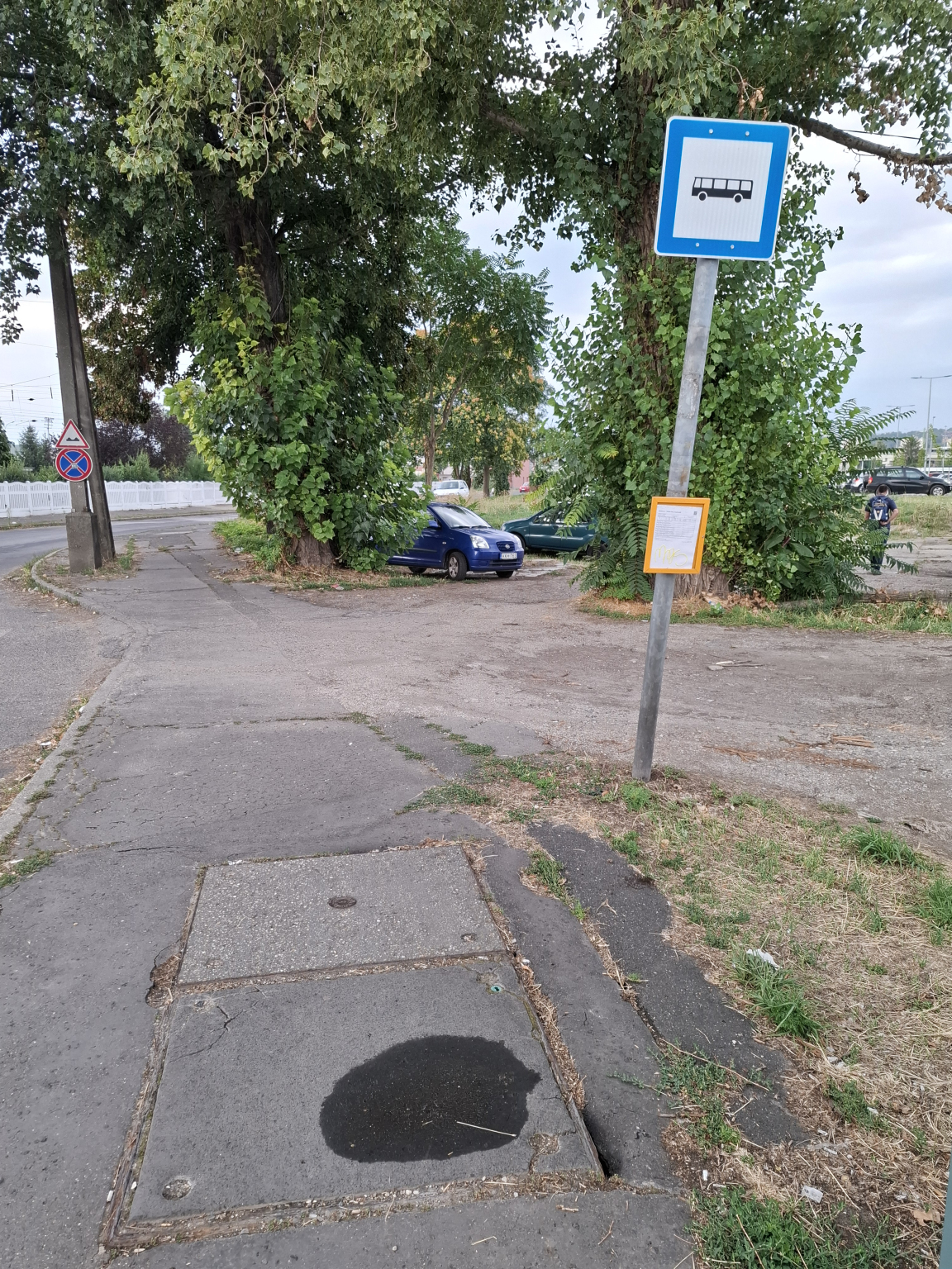 A Pfaff Ferenc utca kezdeténél a buszmegállóban a fedlap beazakadt, balesetveszélyes.