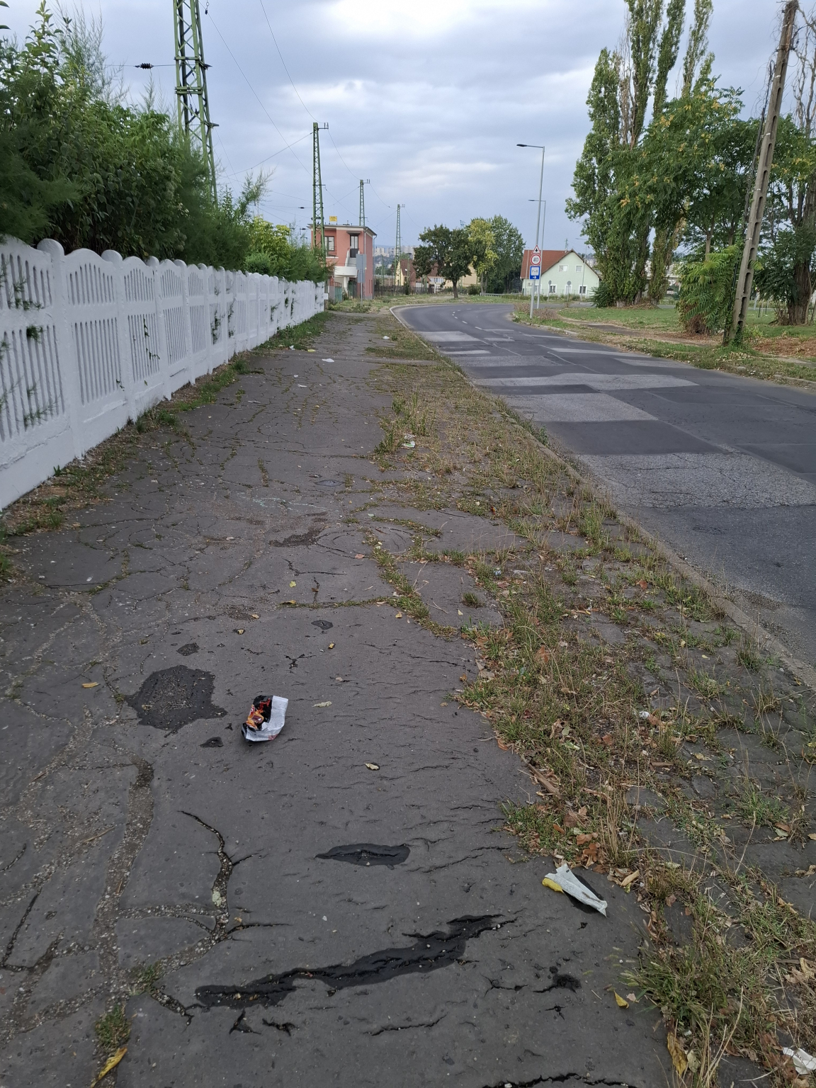 A Pfaff Ferenc utca megjelölt részén sok a szemét a járdán.