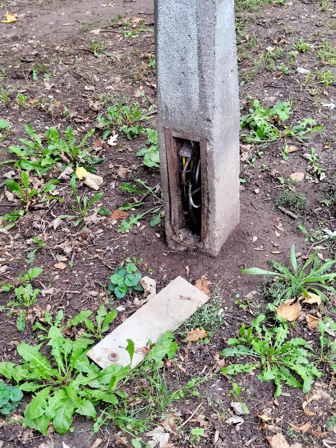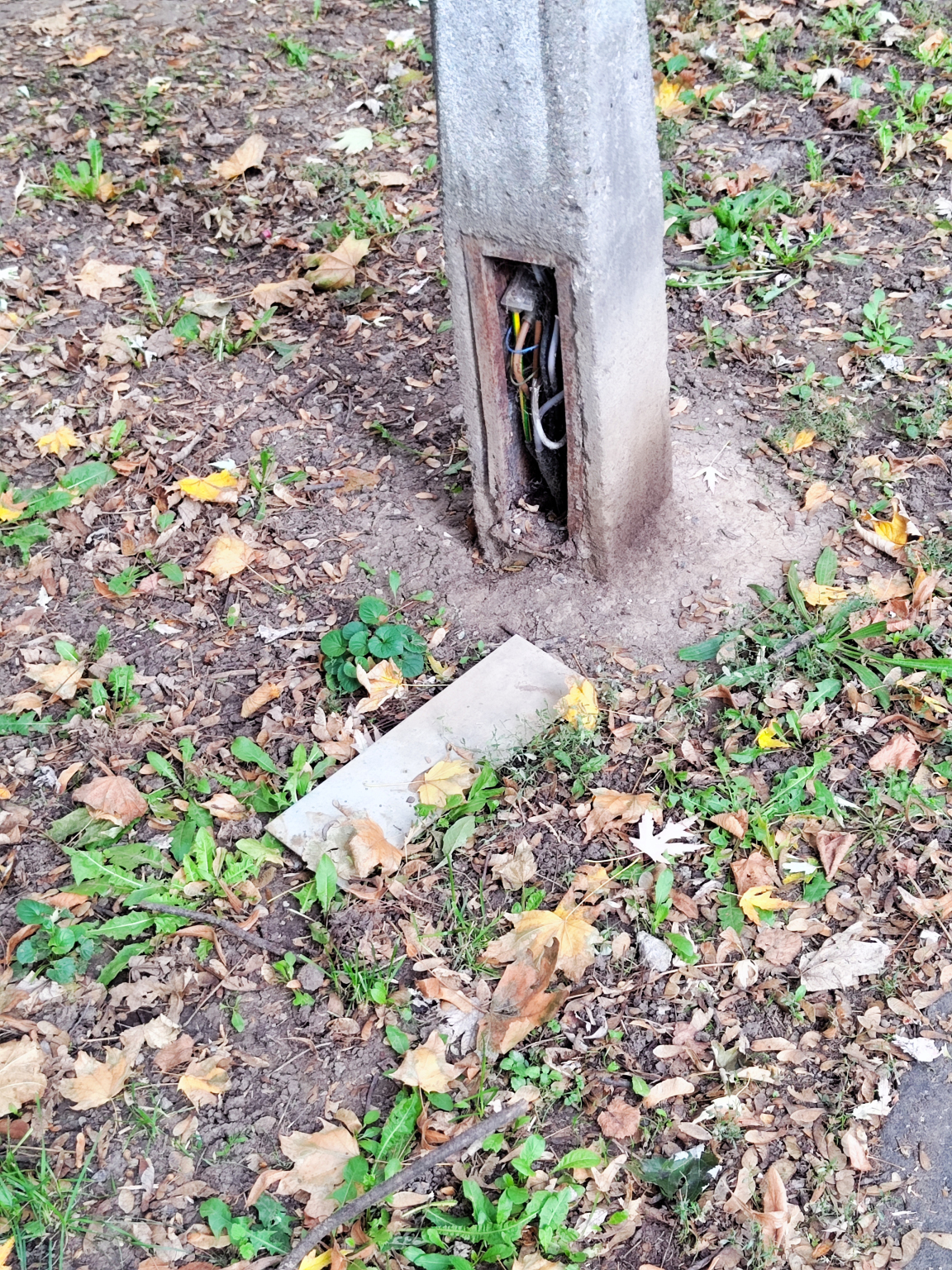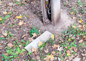 Miskolc Aba u 27. és 35. előtti közvilágítás oszlopokon nyitott az elektromos csatlakozás bármelyik gyerek hozzá érhet. A közelben van egy óvoda.