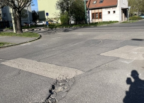 A 10-es posta melletti kereszteződésben a villamos sínek vonala melletti kátyúk javítását szeretném kérni.
