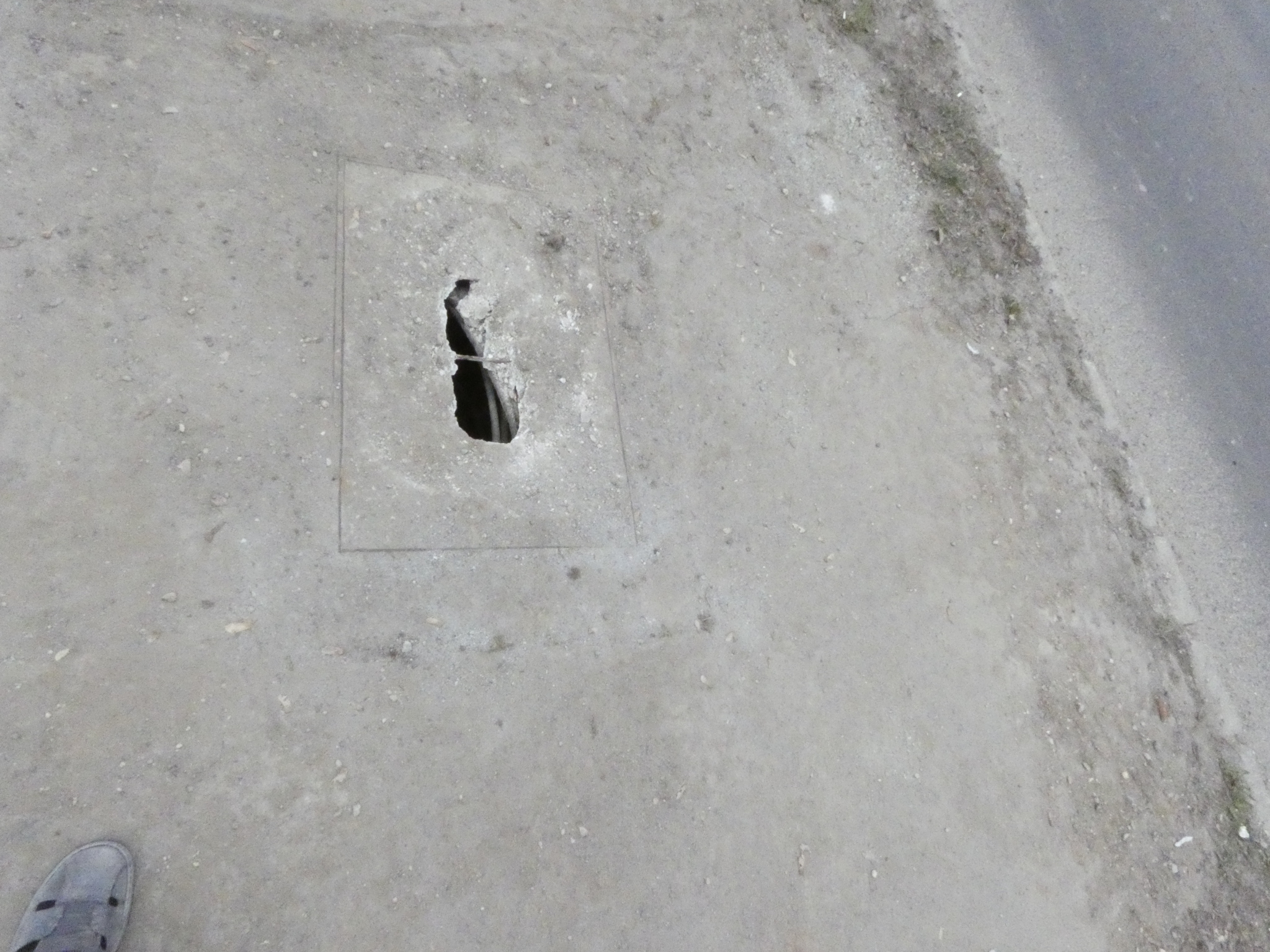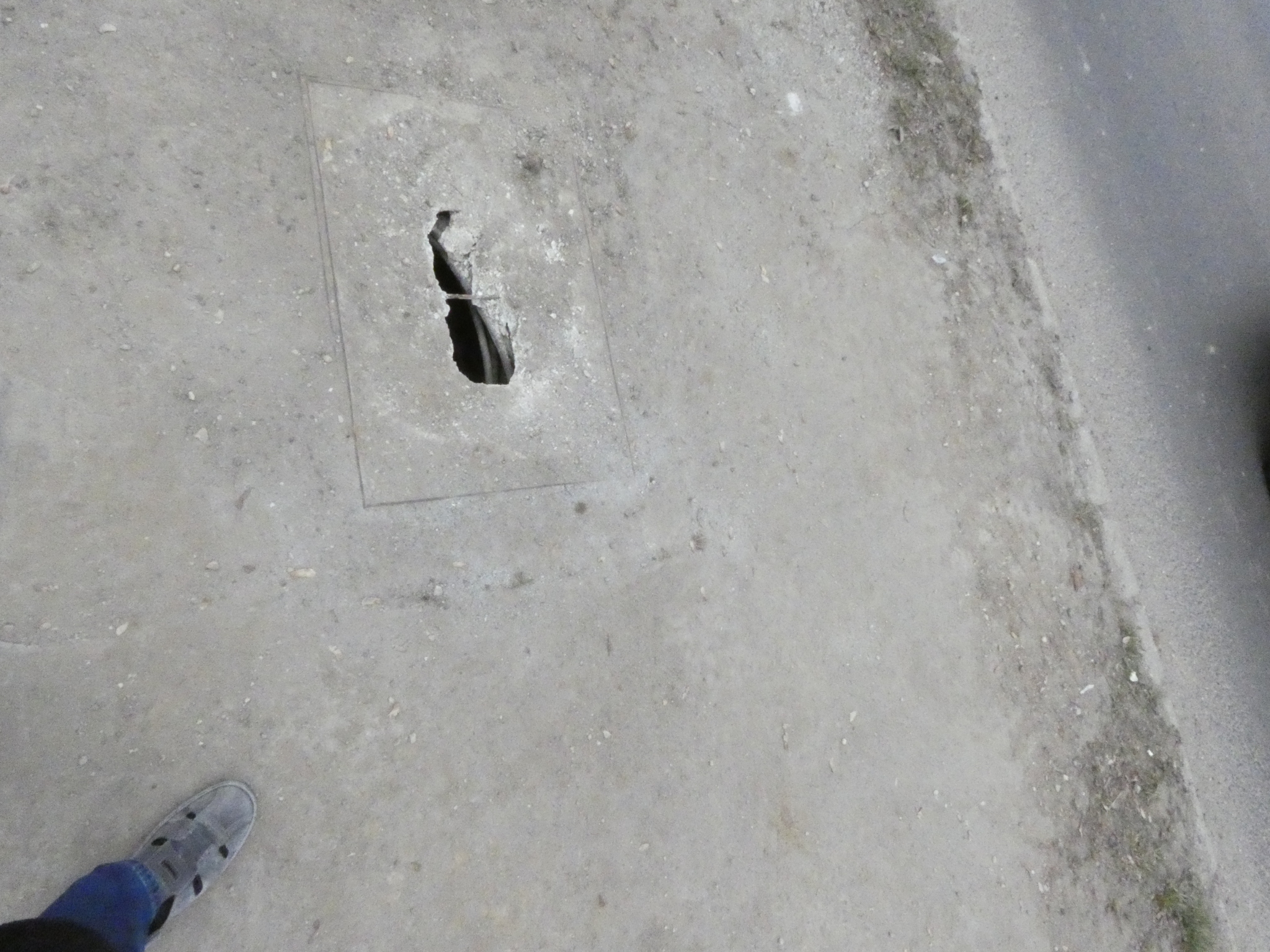 Miskolc Soltész Nagy Kálmán 171 előtti járda közepén feltehetően távközlési akna fed lapja be van szakadva. Jelenleg itt ideiglenes buszmegálló is van. jelenleg jelölő festékkel körbe lett fújva.