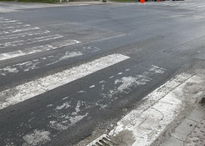 Az Orosi úton a kerékpárút mellett a szervizdoboz előtt be van szakadva