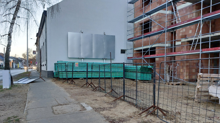 A nyíregyházi Kossuth Lajos utca 44. sz. alatt folyó építkezés lezárásra hivatott kerítés elemei nem megfelelően vannak rögztve. Azokat nagyobb szél ki tudja dönteni, ahogy a fényképen is látszik.