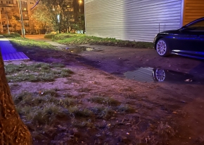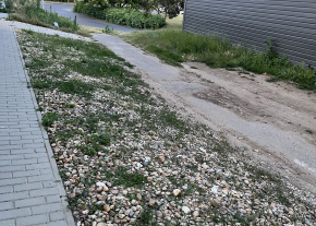 A gyalogos járda jarhatatlan a zöldfelület tönkre van téve.