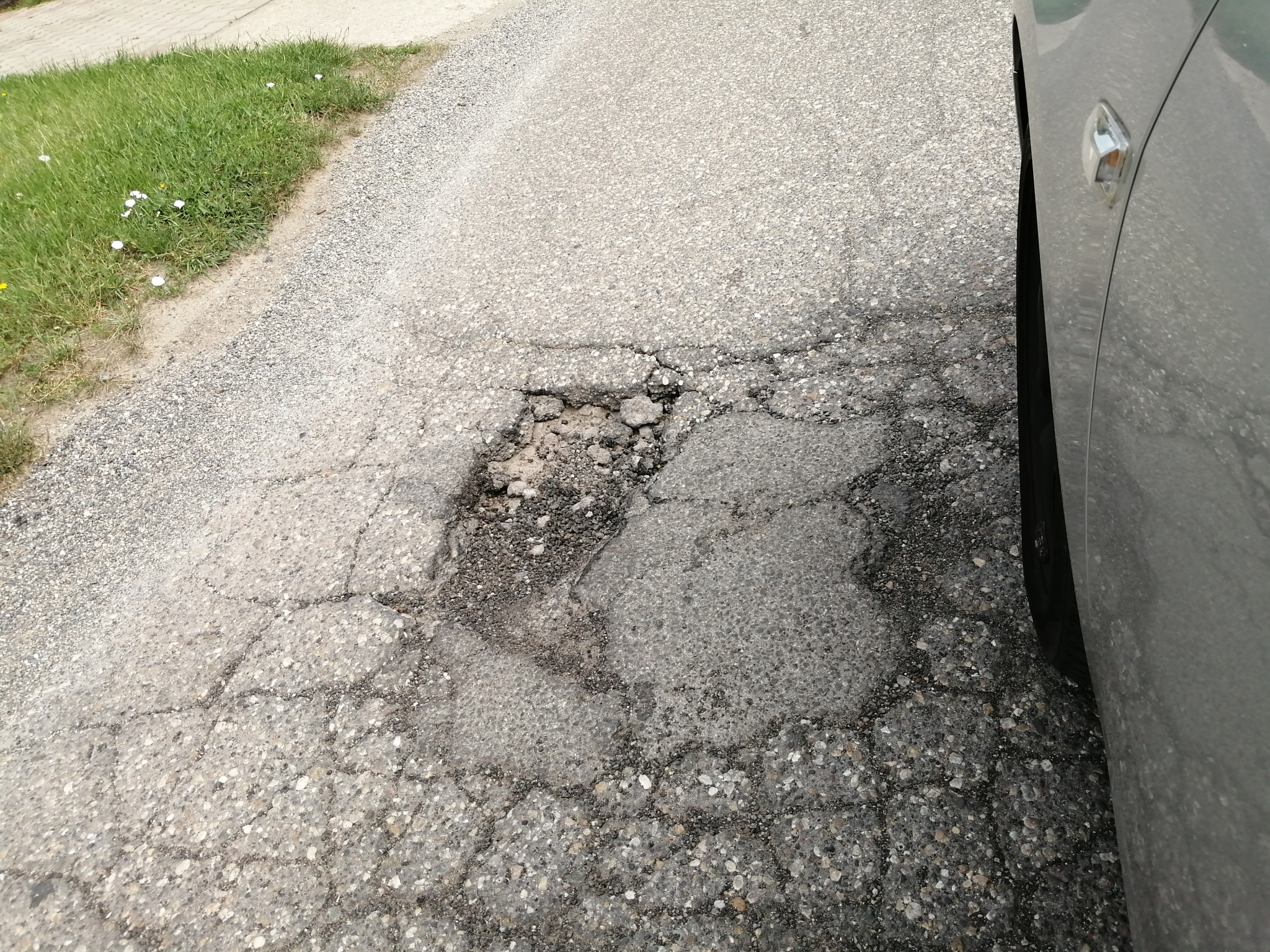 A Friss utca elejétől a Varázs utcáig több helyen kátyús lett, kereszteződésben szintén.