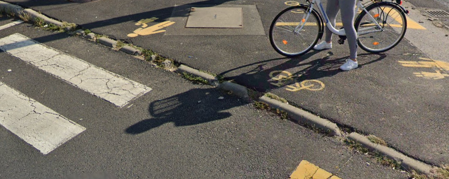 A 4-es főút mellett haladó kerékpárút Kosbor utca - Törzs utca - Pazonyi út kereszteződősében a kerékpáros átvezetésnél (Tescotól az Aldi felé) lévő padkák túl magasak és rossz minőségűek is.