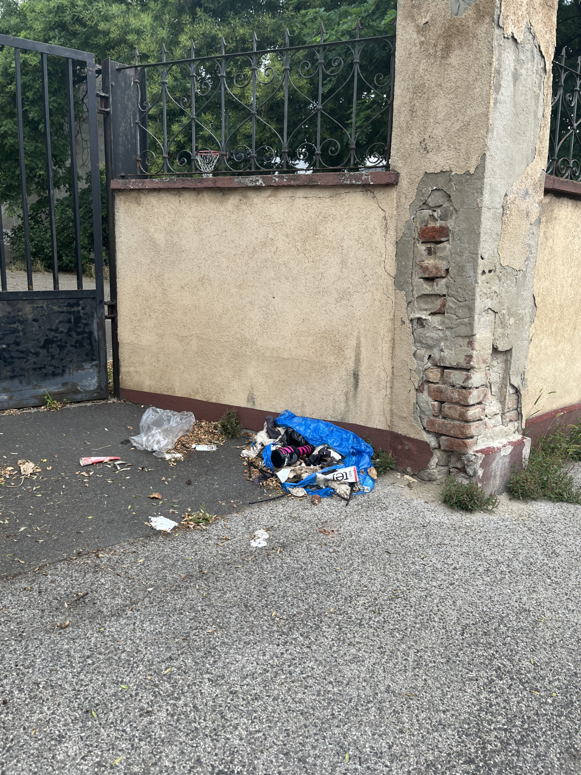 A Béla utcán 3 helyen is kiszakadt kukászsák van,erős bűz árad belőlük.