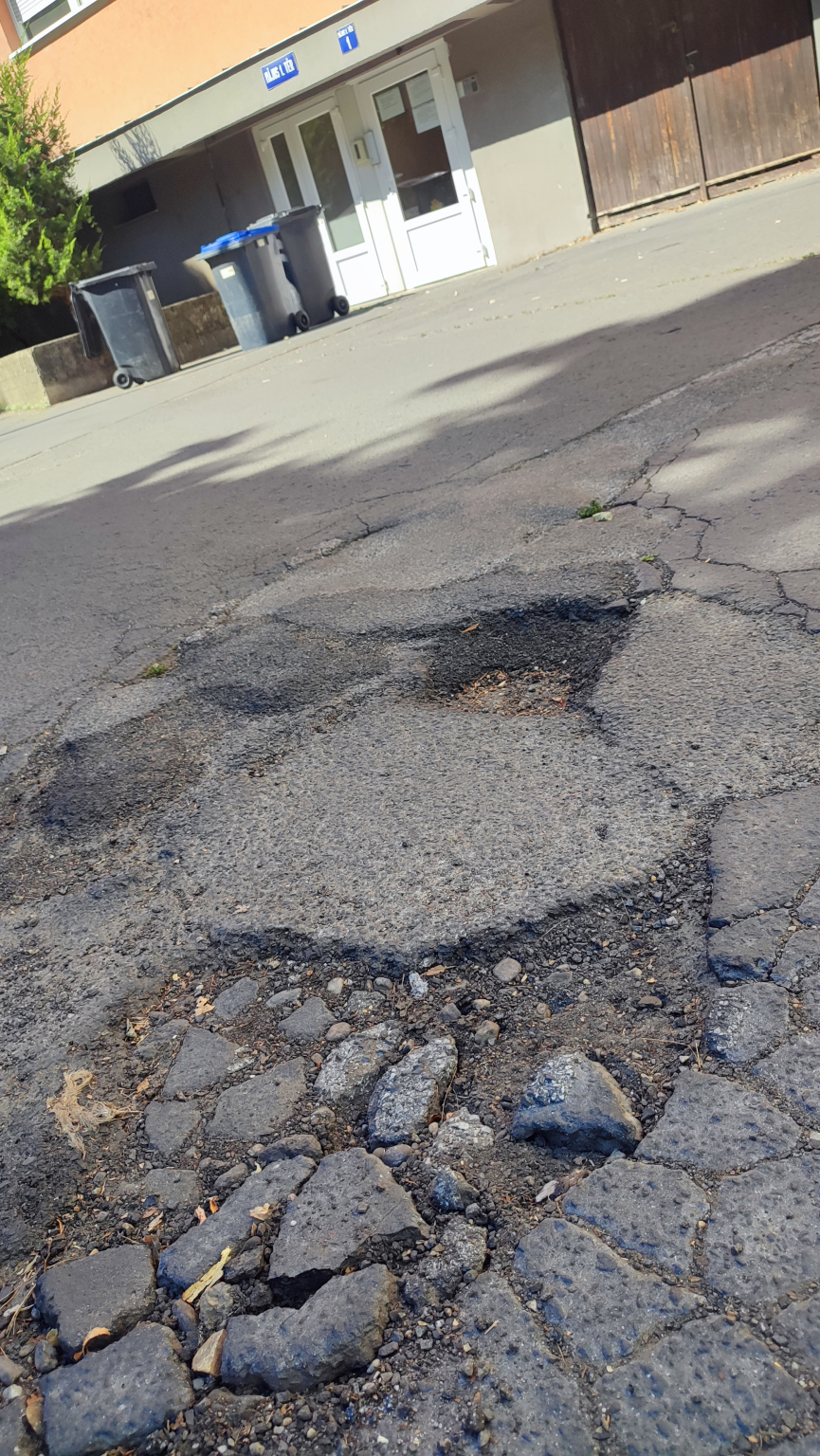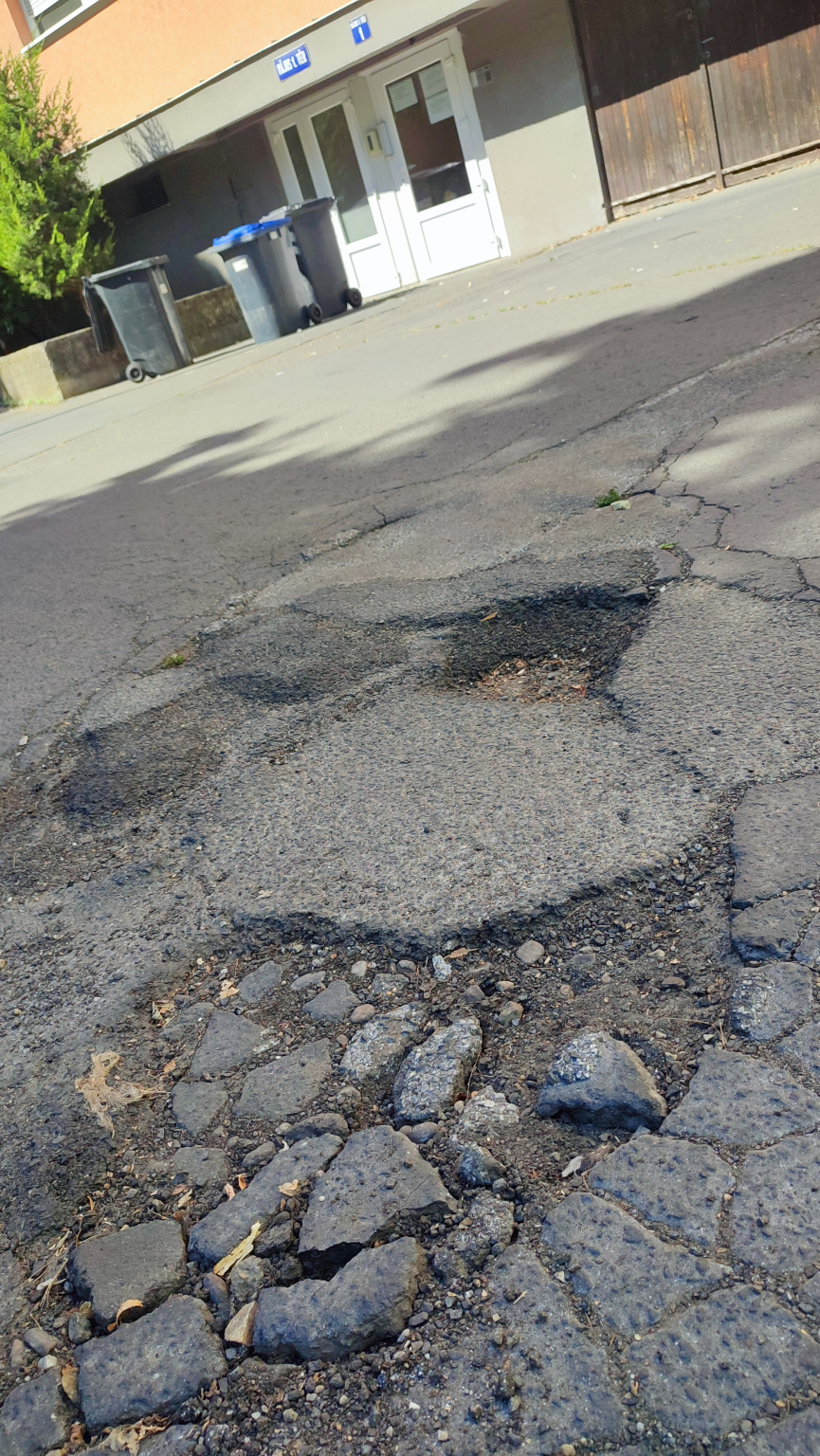 Nyíregyházán a Május 1 tér 1 és 3 szám előtt található három darab kátyú ami az autó közlekedés miatt folyamatosan egyre nagyobb.