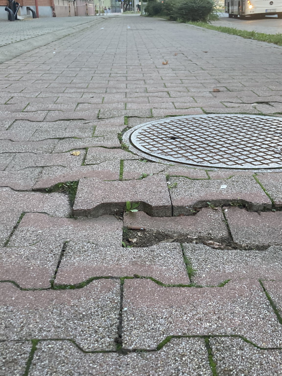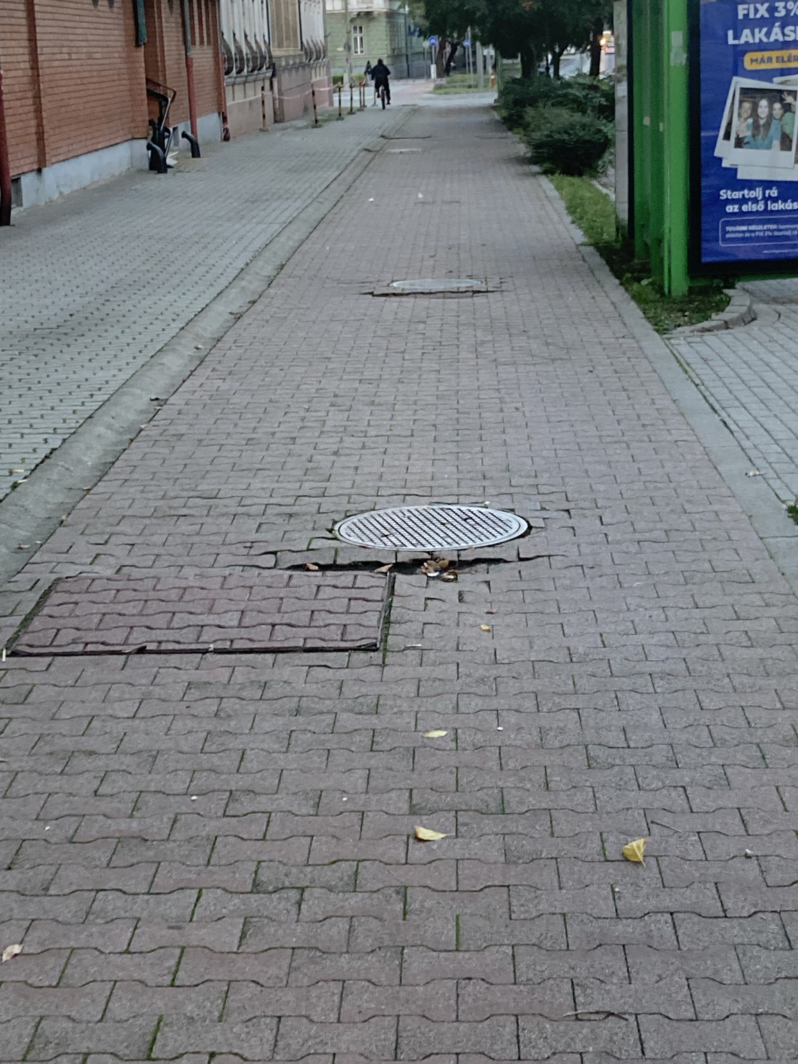 Az Országzászló tér, Széchenyi utca Kamara és Levéltár előtti szakaszán veszélyes útburkolati hibák keletkeztek több aknafedlap közelében a kerékpárúton. Biciklivel, de kisebb kerekű járművel kimondottan veszélyes. A szakasz rosszul kivilágított, este az érintett hibák nem látszanak, ami fokozza a balesetveszélyt.