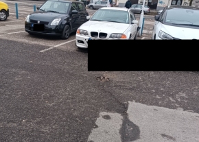 Egy lejárt műszakival rendelkező gépjármű áll a közterületen.