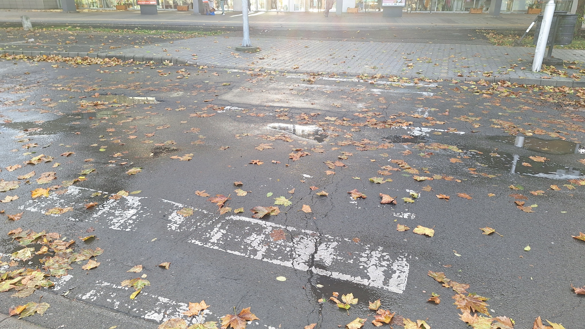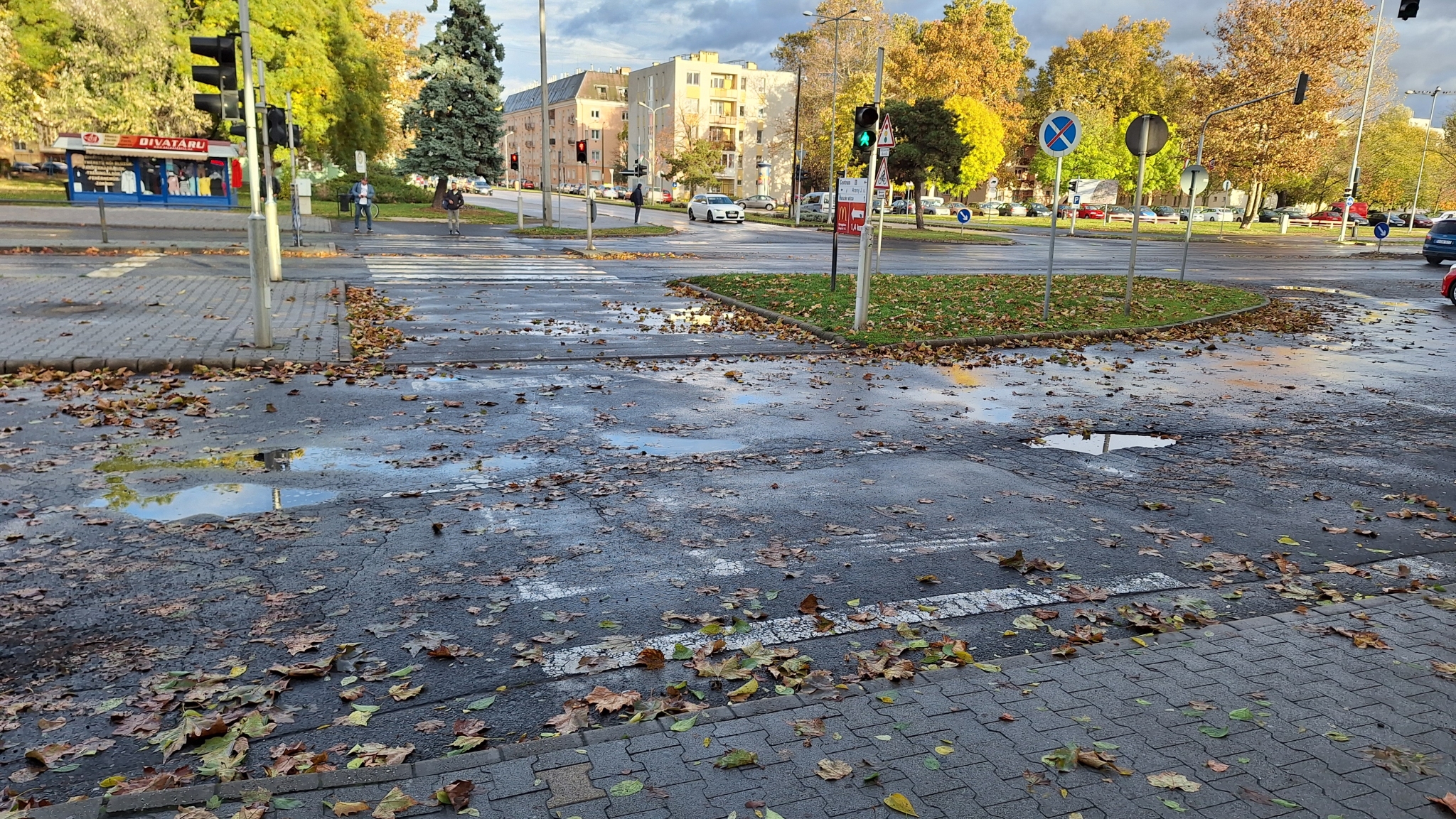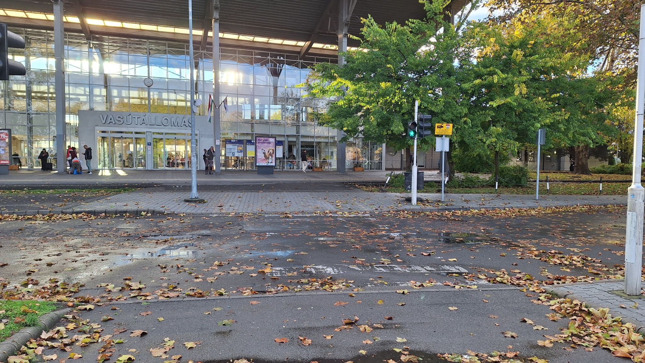 A Nyíregyháza vasútállomás előtt lévő zebra szinte teljesen lekopott és azt is méretes kátyúk szegélyezik.