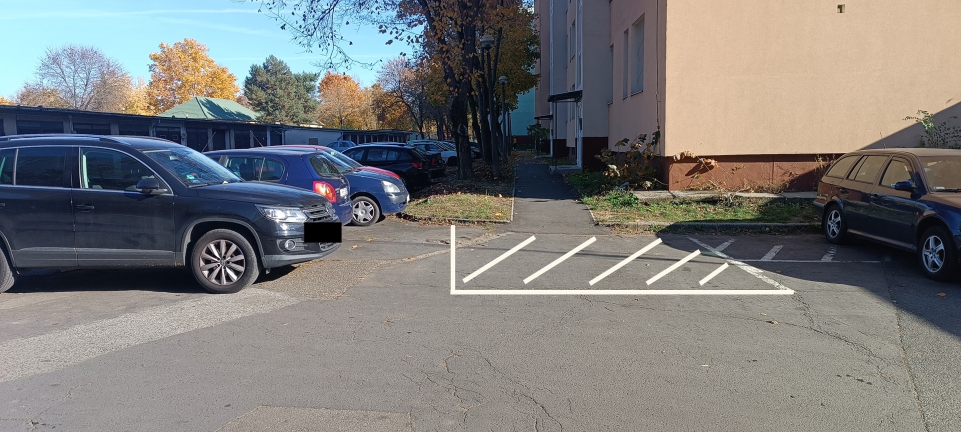 Kérem, a terület megvizsgálását és javaslom forgalom elől elzárt terület vagy X jel felfestését a parkoló autók ellen.