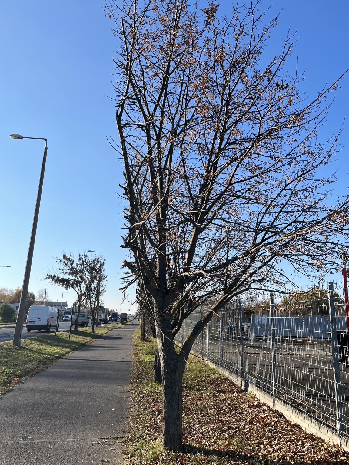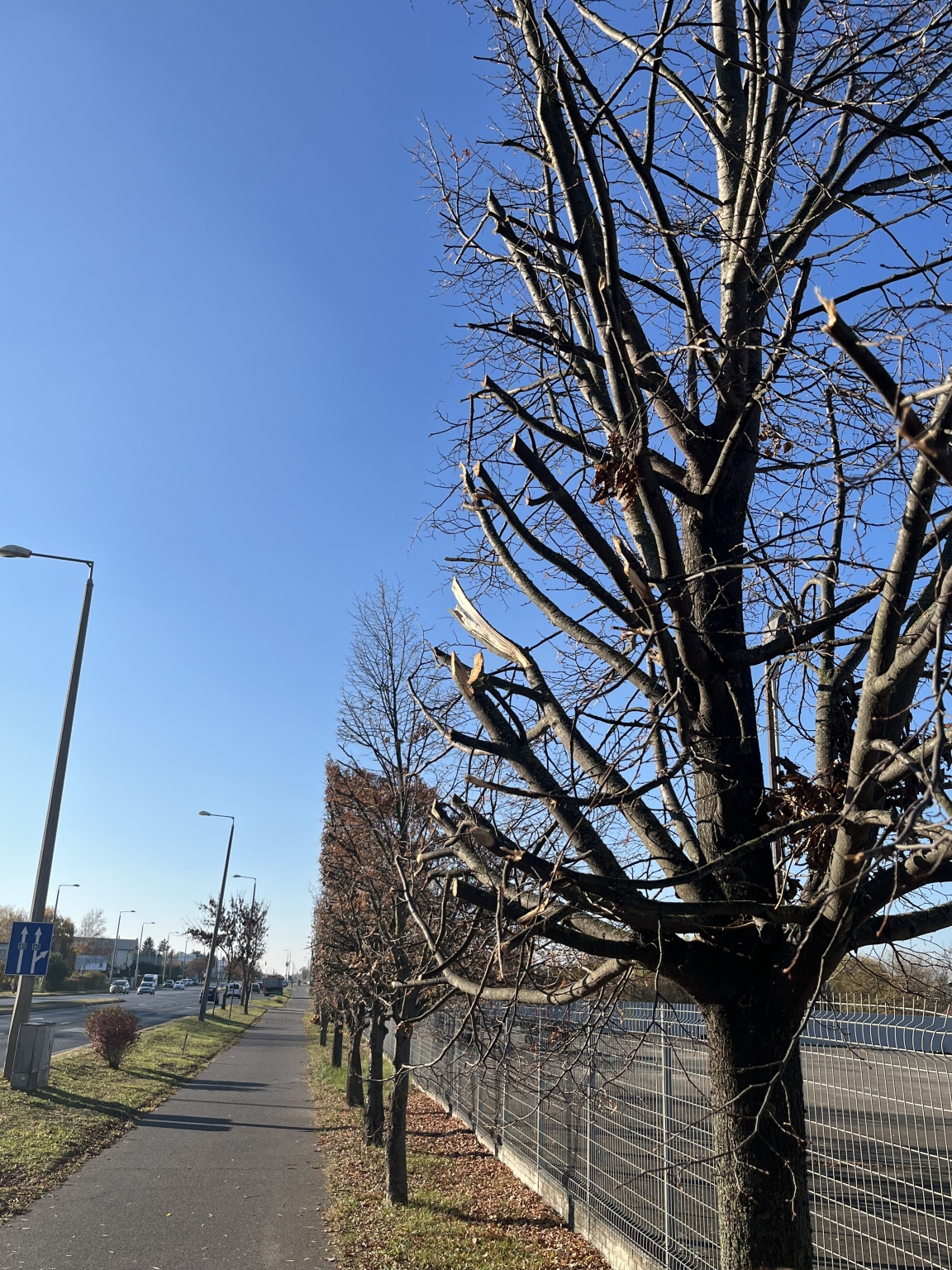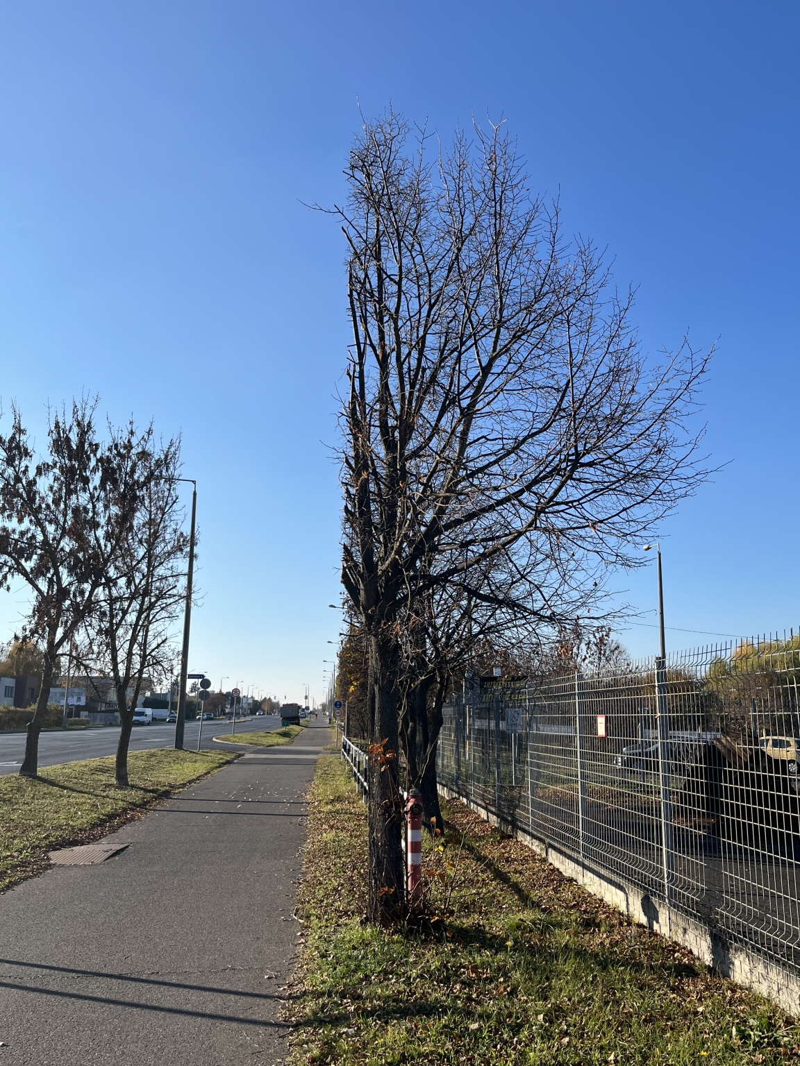 A Nyíregyházi úton a sövényvágási munkák során a hársfasor lombkoronáját is levágták, az ágakat csúnyán csonkolták.