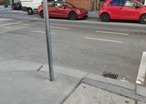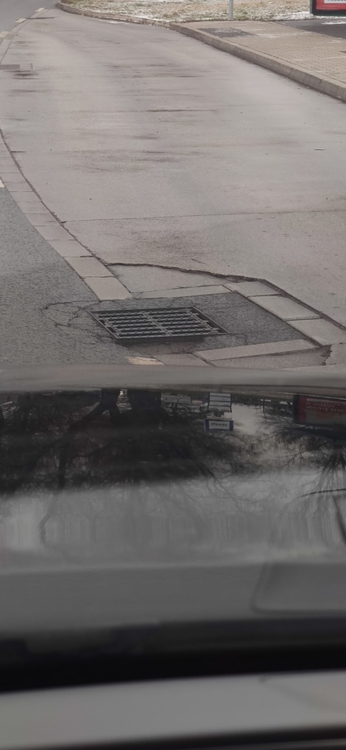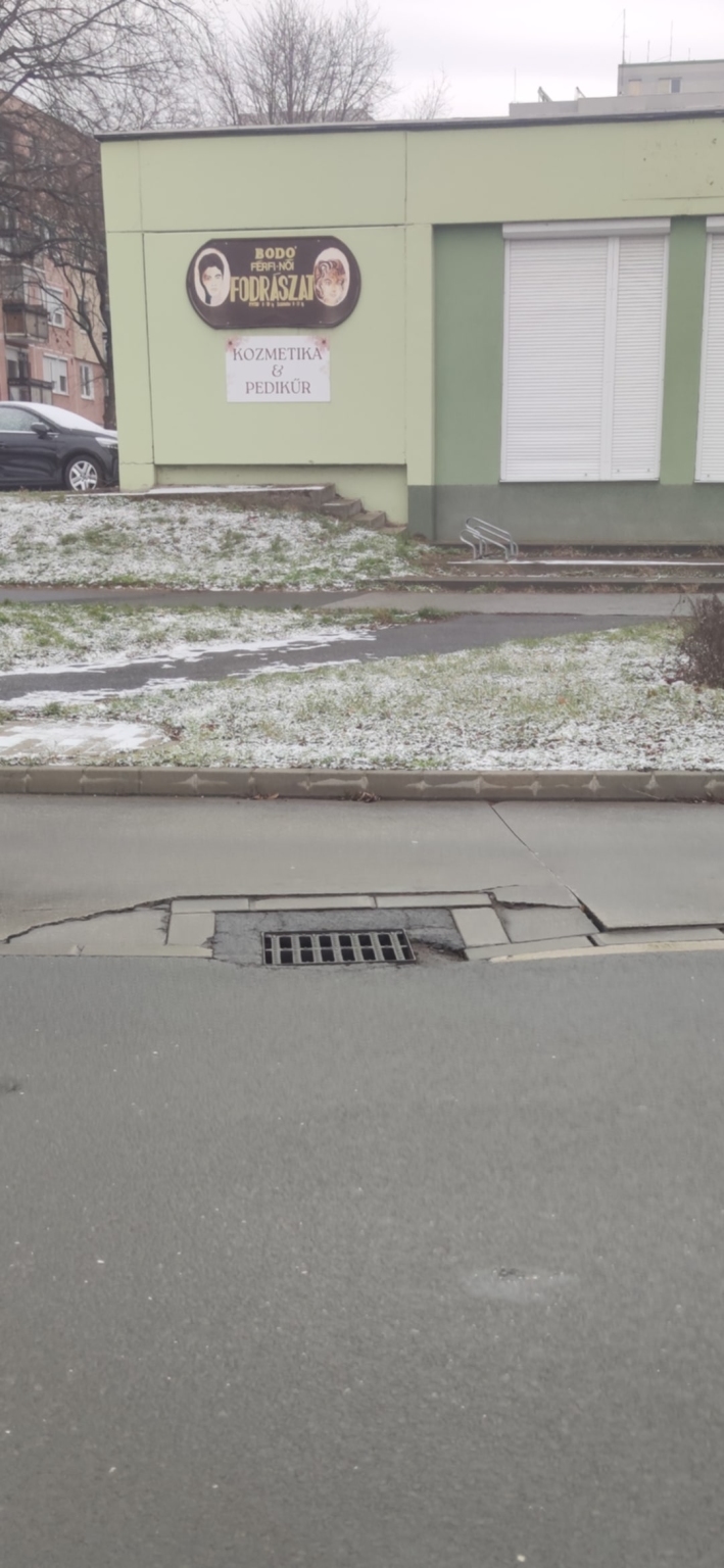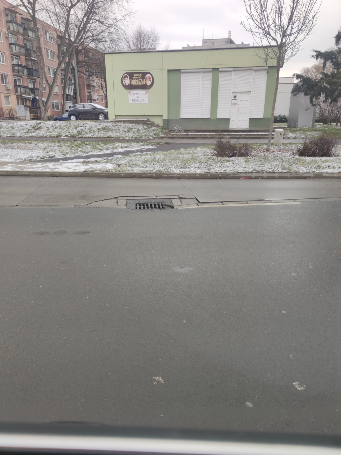 A képen látható csatorna beszakadt, a buszmegálló elején.