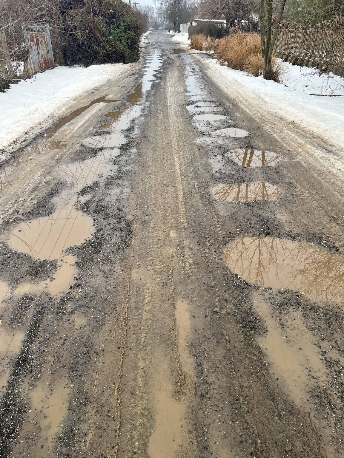 Nyíregyháza törökrózsa utca tovàbbra is járhatatlan. Mivel nem vezetik be az utcába szennyvíz elvezetést, nincs aszfalt út, ezáltan a földüton hatalamas kátyúk vannak.