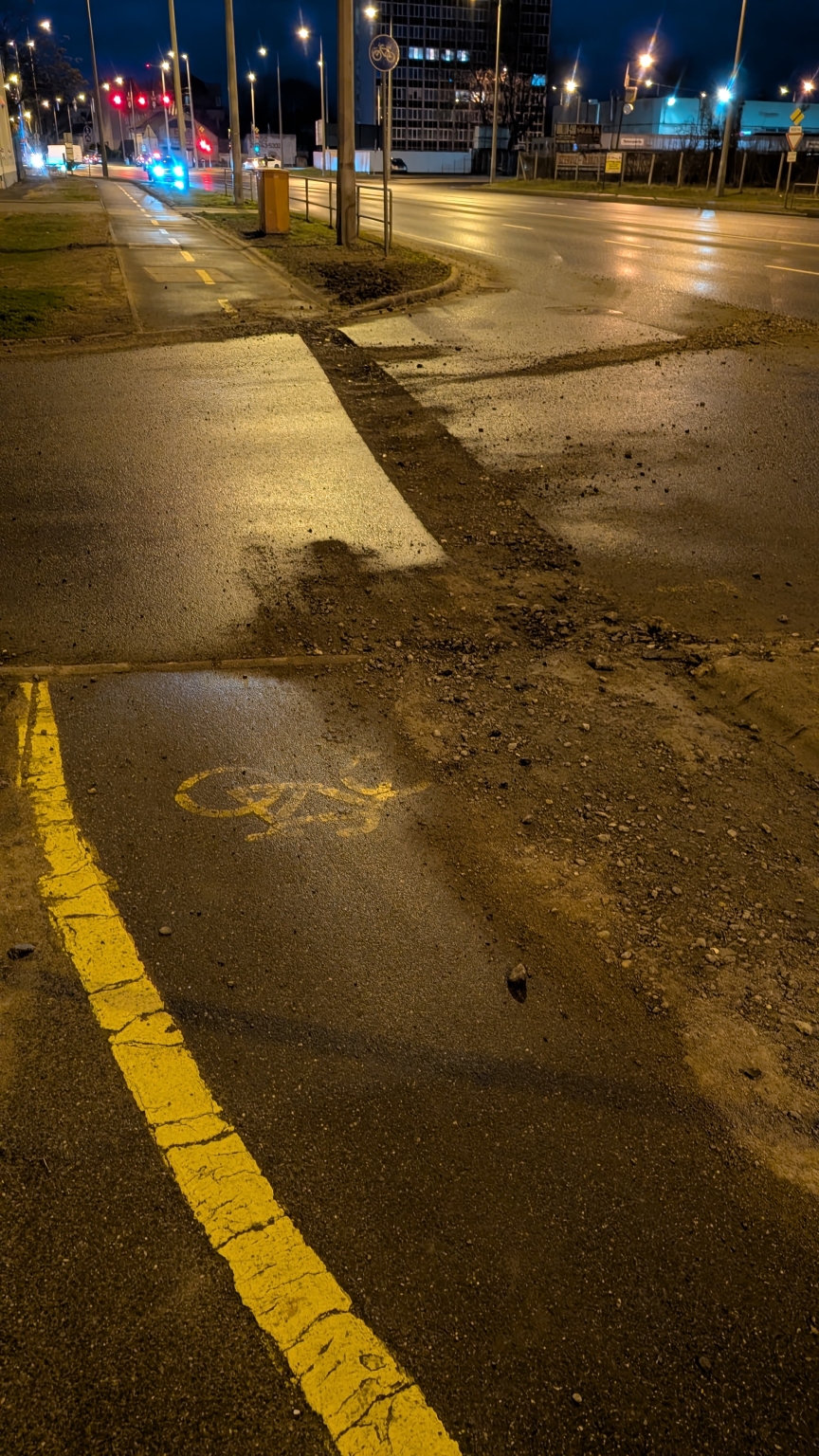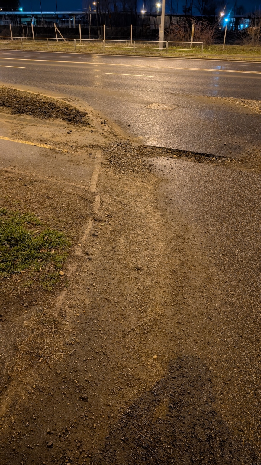 A képeken látható módon egy munkálat utáni javítás maradványai láthatóak, mivel a járművek rövid idő alatt elhordták a javításra szánt betonozást a vájatokból.