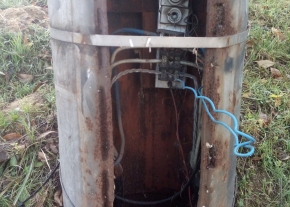 Ózd Szentsimon után Hangony felé már éppen külterületen, kidőlt egy villanyoszlop, csak a vezeték tartja.