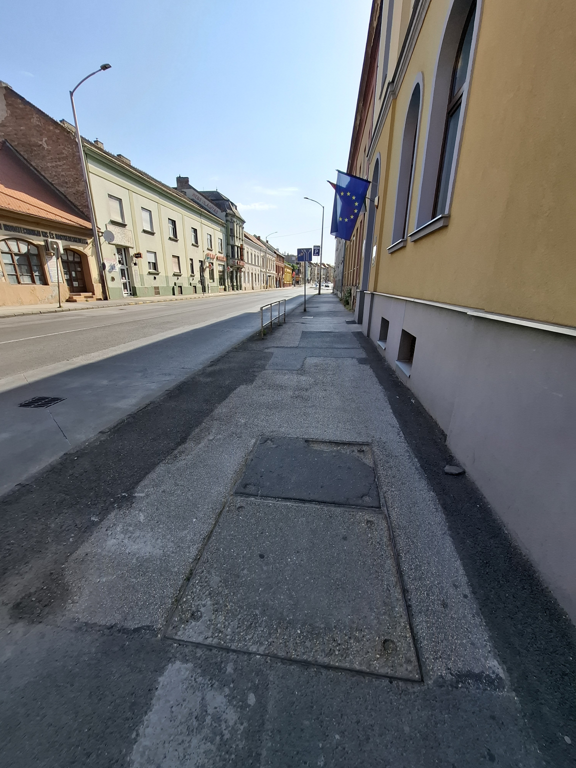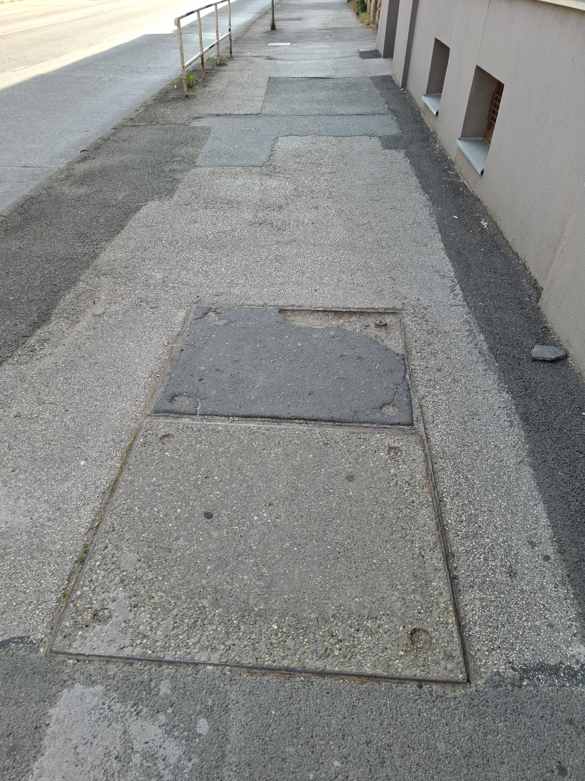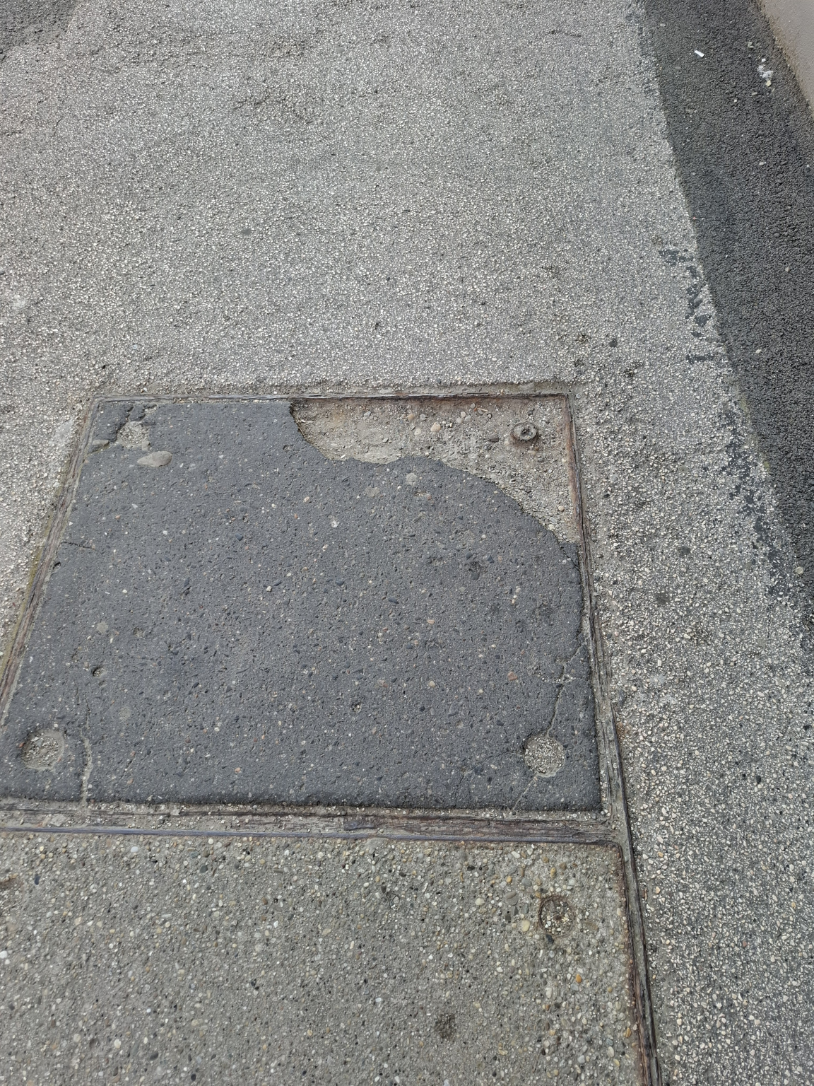 Az aknafedél botlásveszèlyes. Kérem javítsák!