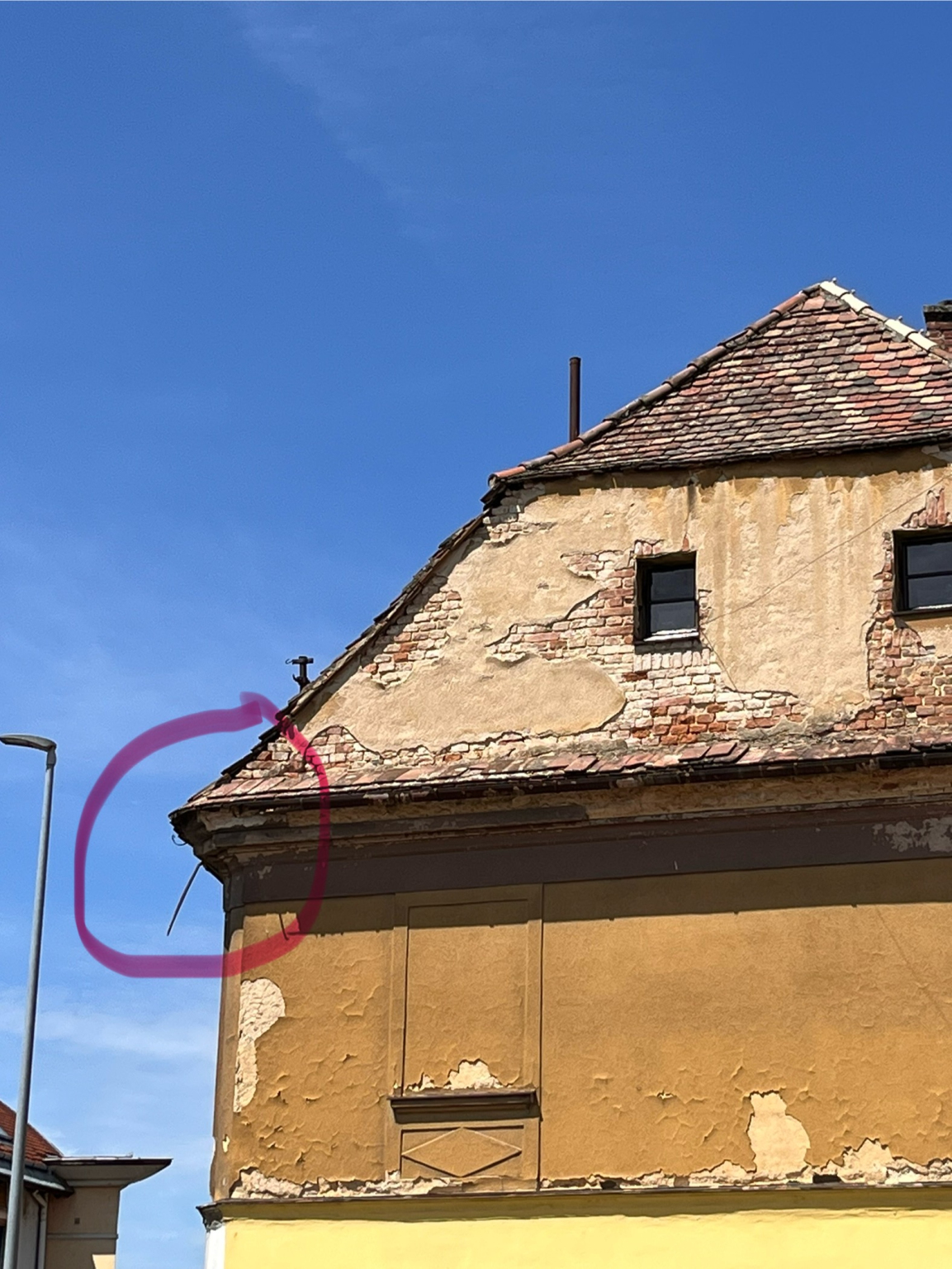 A Király utca 93. és a Katalin utca sarkán levő romos épületről, hónapok óta (pont akkoriban nyitott újra ismét egy kocsma sokunk elkeseredésére) lelóg egy rozsdás ereszcsatorna darab, mint Damoklész kardja, úgy lóg ott a járókelőket “fenyegetve”. Ez egy nagyon forgalmas rész, gyalogosok, biciklisek, babakocsisok mind az utca ezen oldalán közlekednek, hiszen a túloldalon, a boltba érkezők rendszeresen a járdán parkolnak autójukkal, emiatt a járókelők ott nem férnek el csak a túloldalon.