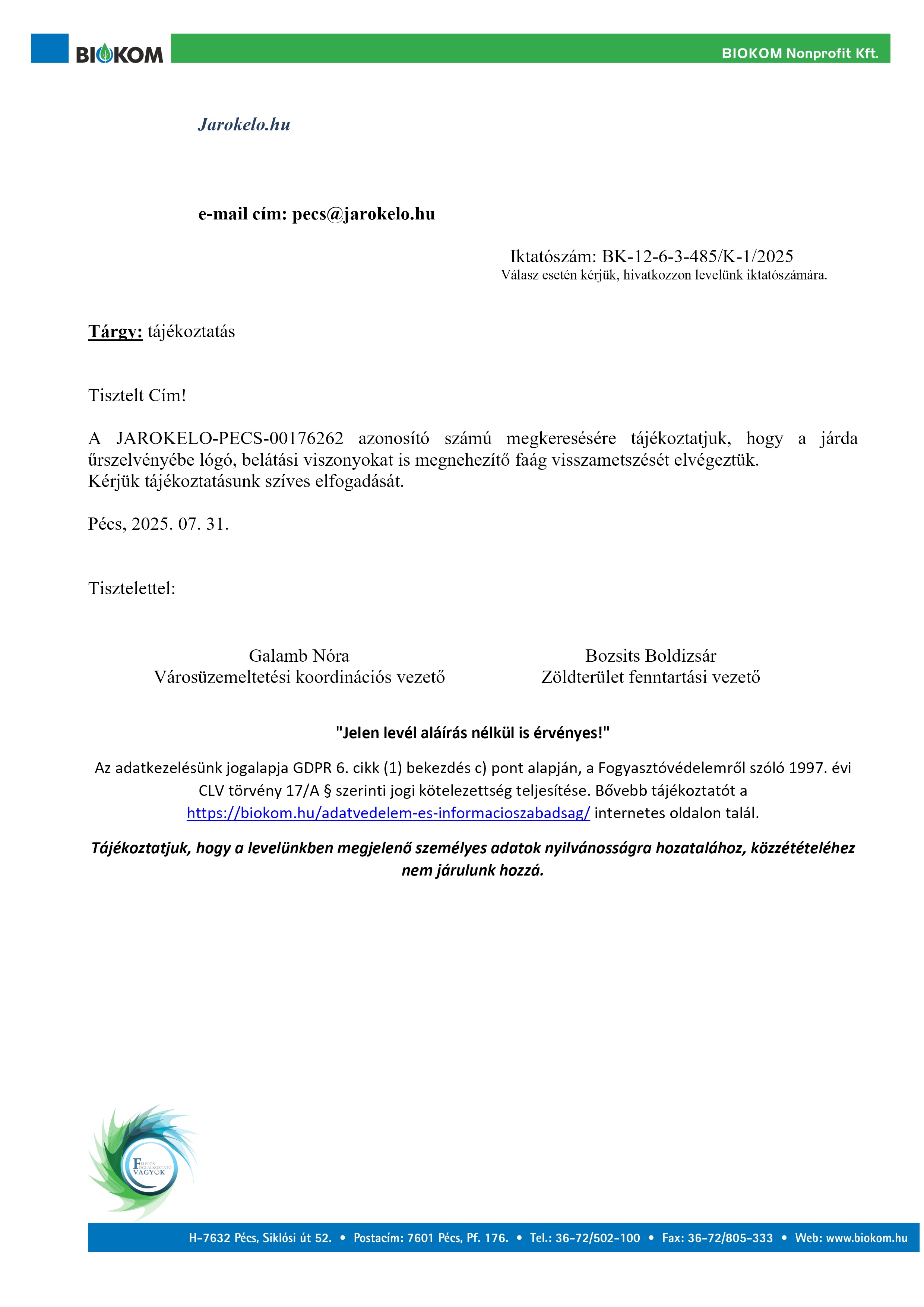 Csatolva küldjük tájékoztató levelünket!