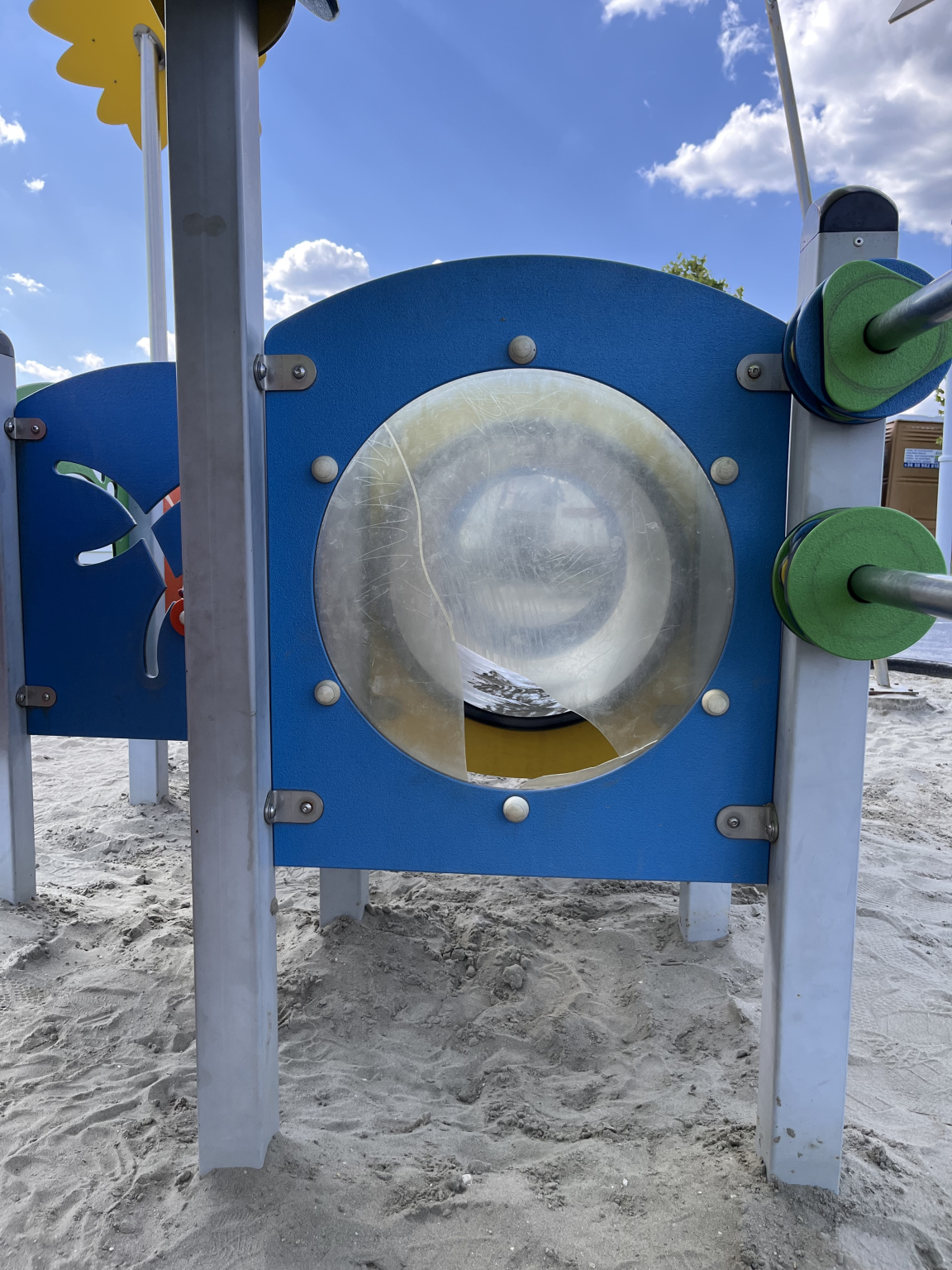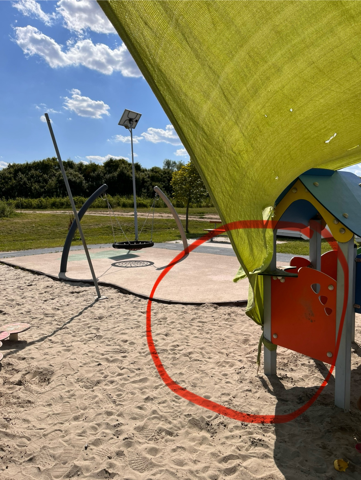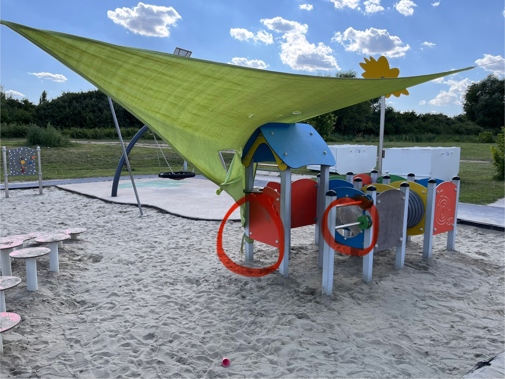 A Tüskésréti tónál található játszótéren eltörött egy plexi elem a játéklabirintusban, mely balesetveszélyes, ahogyan a leszakadt napvitorla is.