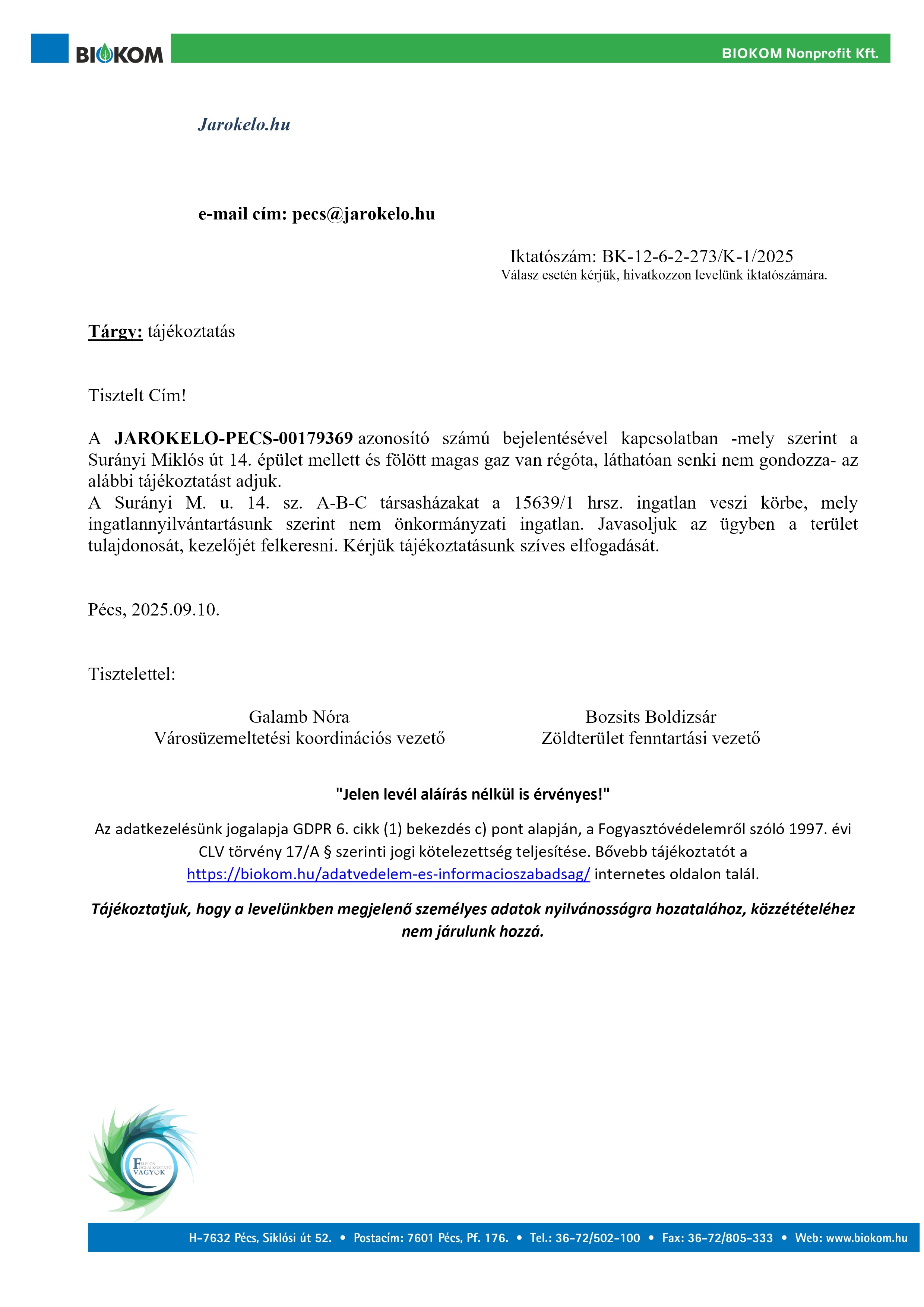 Csatolva küldjük tájékoztató levelünket!