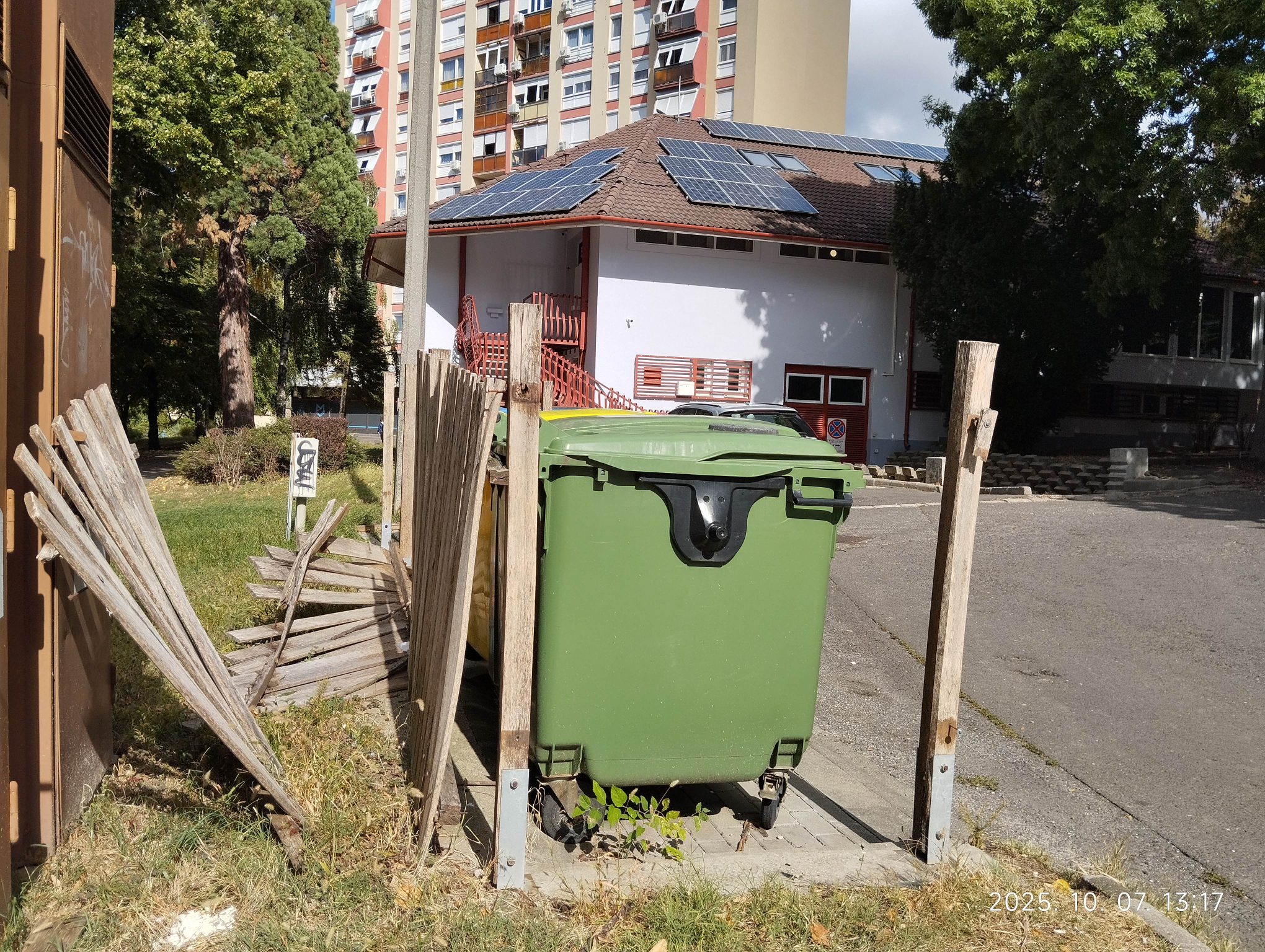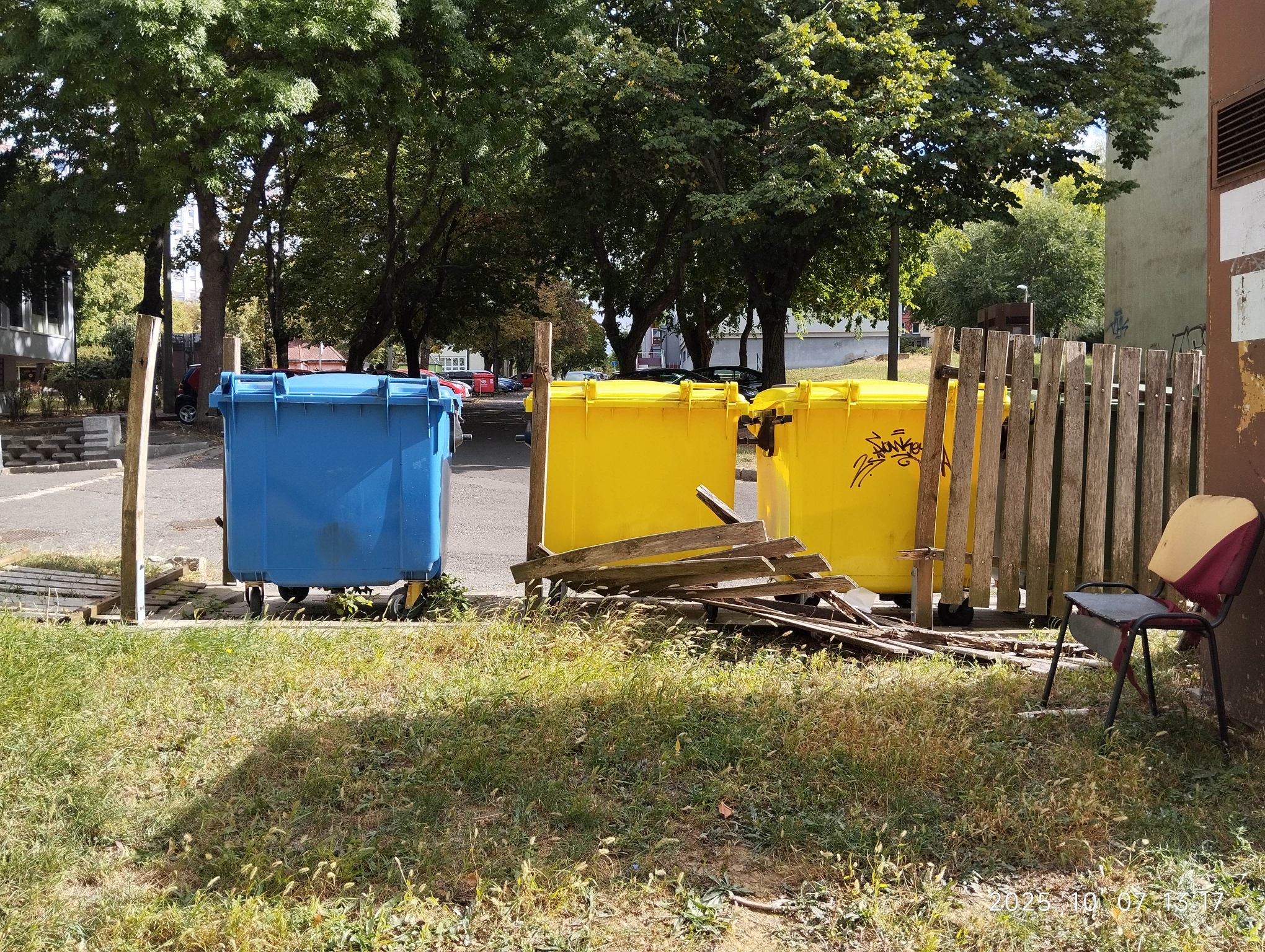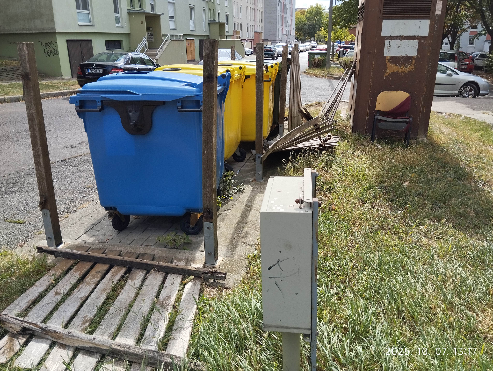 7632 Pécs, Uitz Béla u. 17, melletti szelektív kuka kerítés kidőlt.