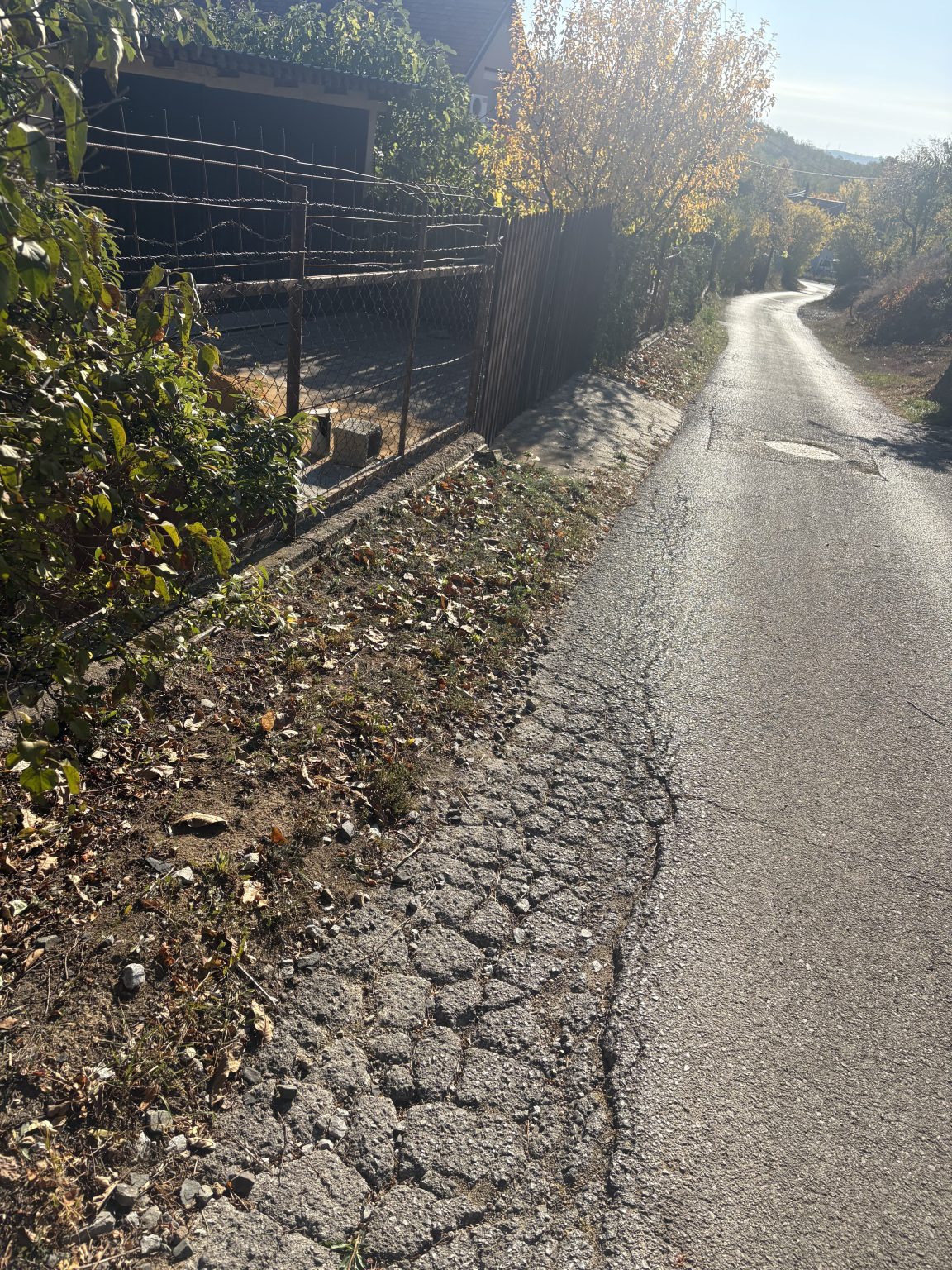 Alsógyükési út 8 felett kicsivel már elég nagyot döccen a kocsi ezen a kátyún.