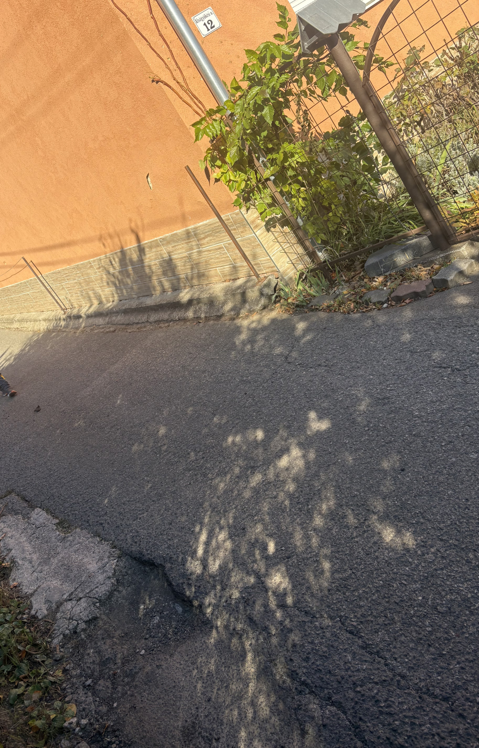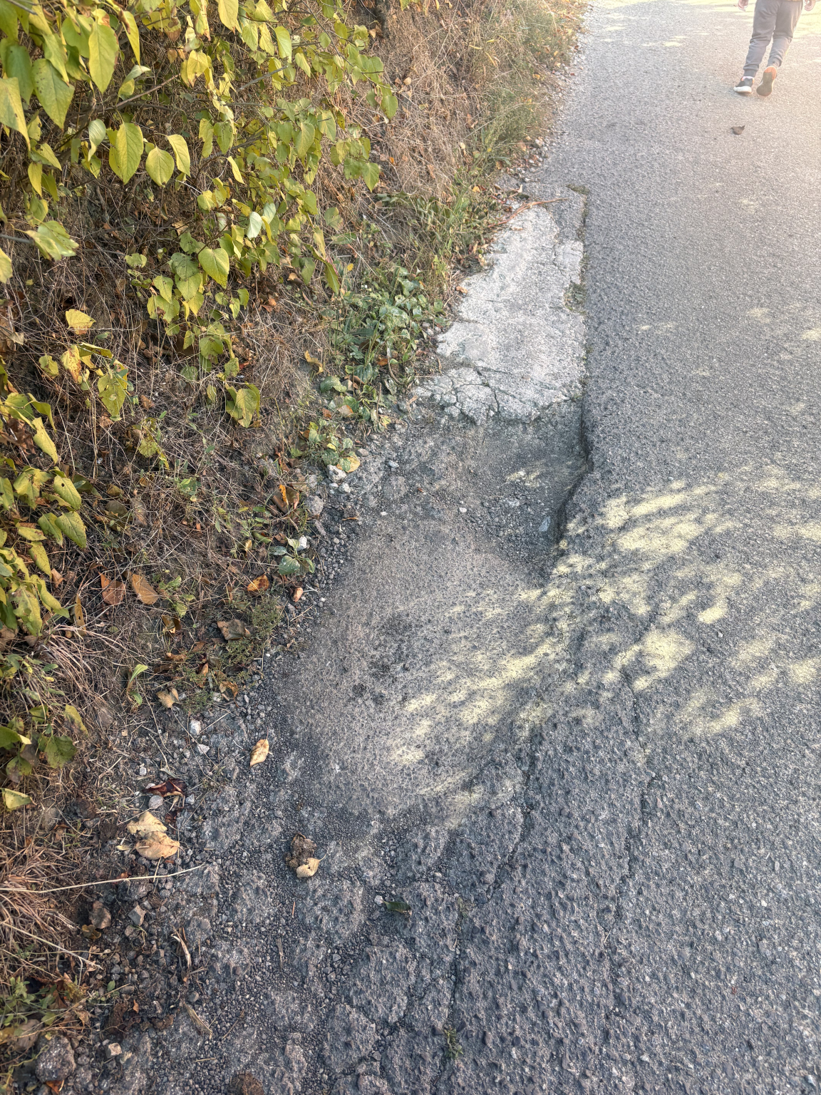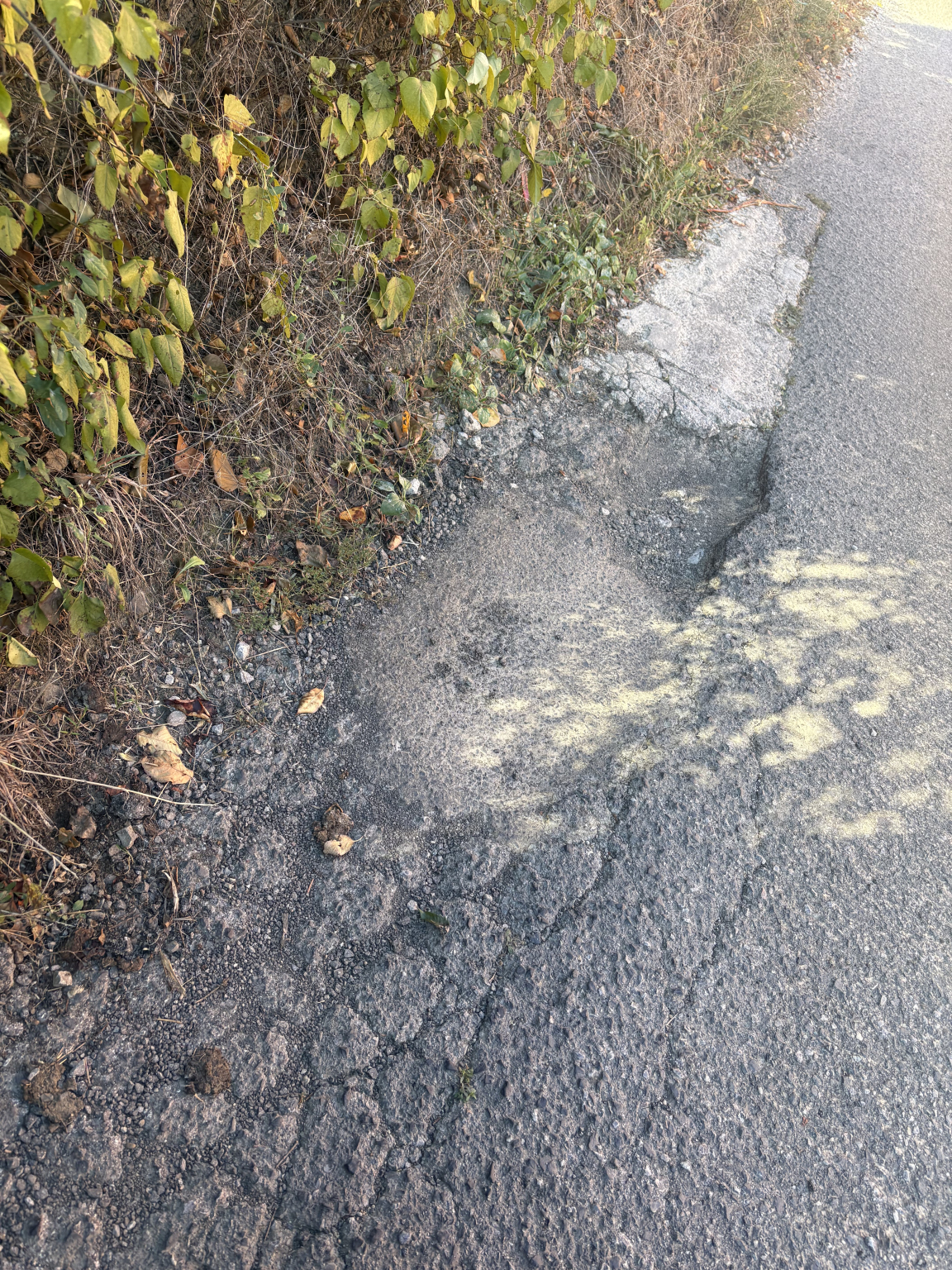 Alsógyükési út 12-nél hatalmas kátyú van az út szélén.