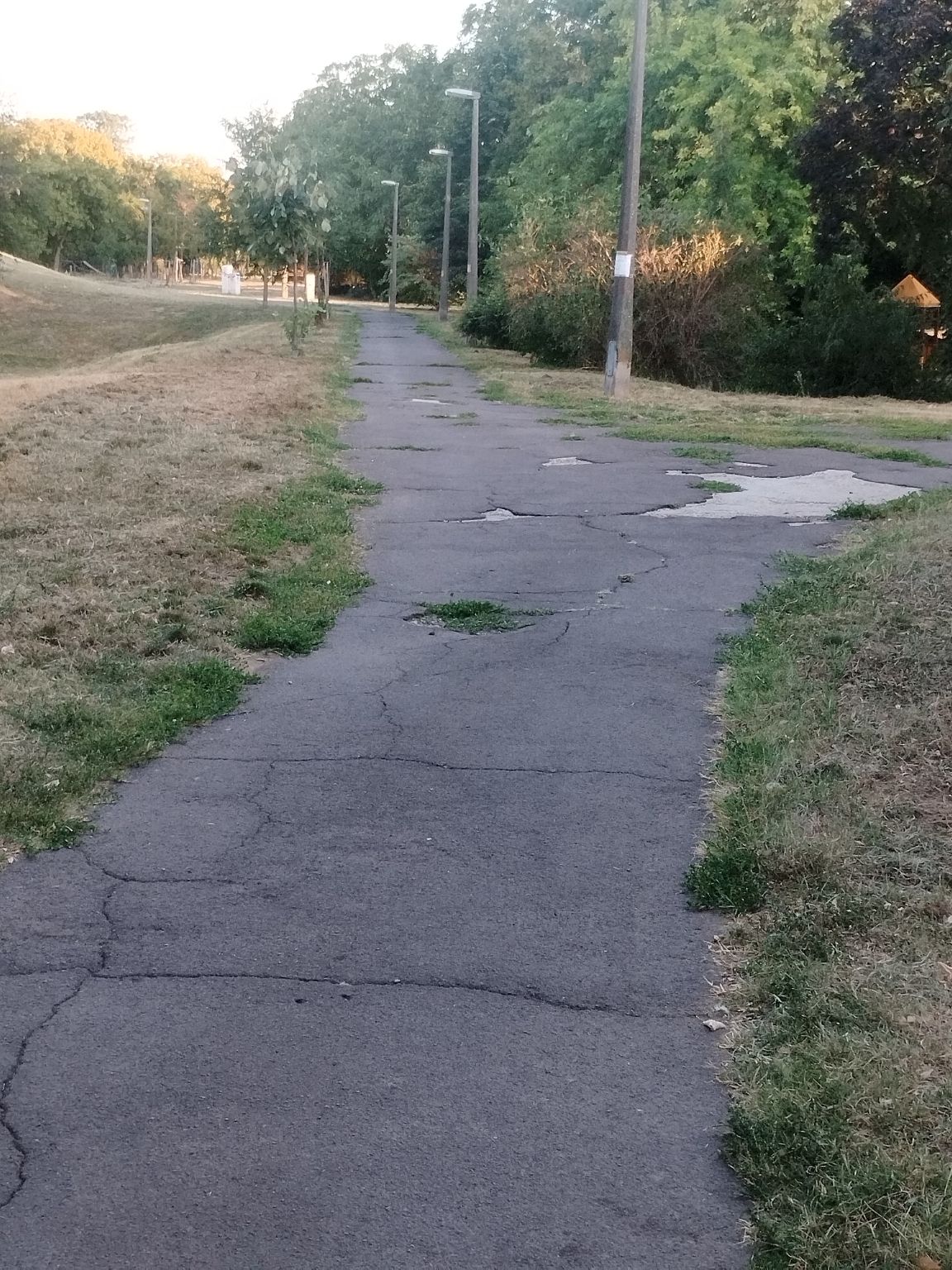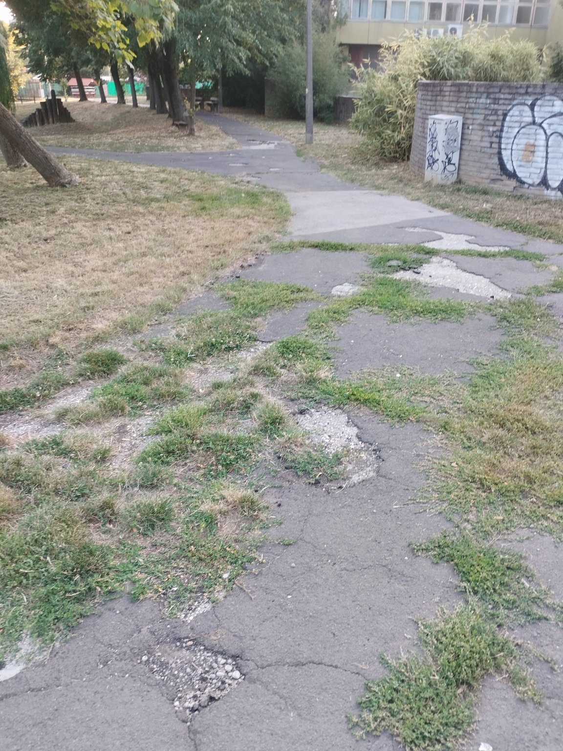 Uránvárosban, a Gergely-kert és a régi Műv. Ház körül repedezettek a járdák, helyenként már fel veri a gaz!