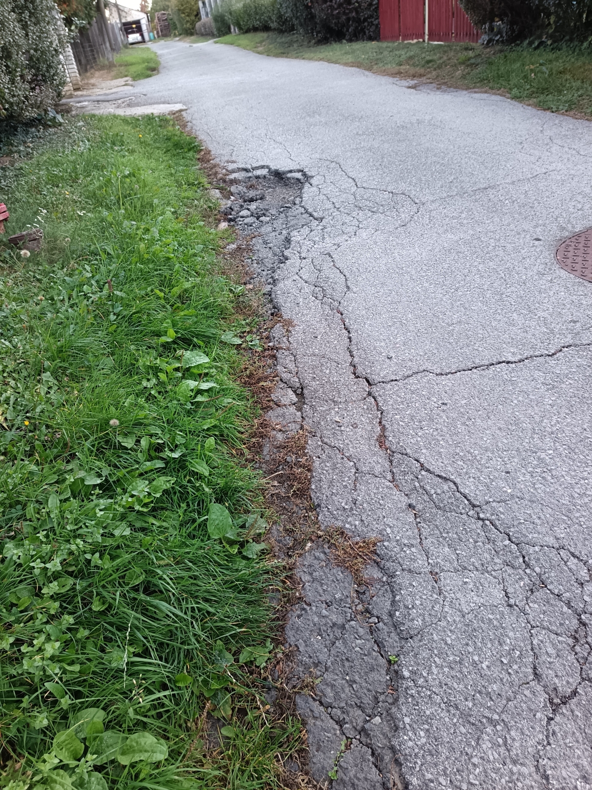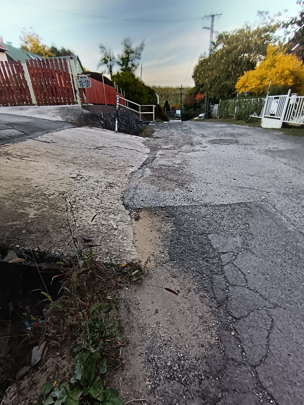 Szabolcsfalu, Bánya utca teljes hossza tele van nagyon mèly kátyúkkal, az út szèle le van szakadozva, az utca 15-21 házszám irányába csatorna felett felkanyarodó betonhìd ès az aszfalt összekötèse kitöredezett, nagy mèlyedèst hagyva, ami megnehezìti a felhajtást az utcába. A 15-ös házszám körül az út szèle szintèn leszakadt, kátyús, rögtön az egyèbkènt is nehezen közlekedhető hìd után.