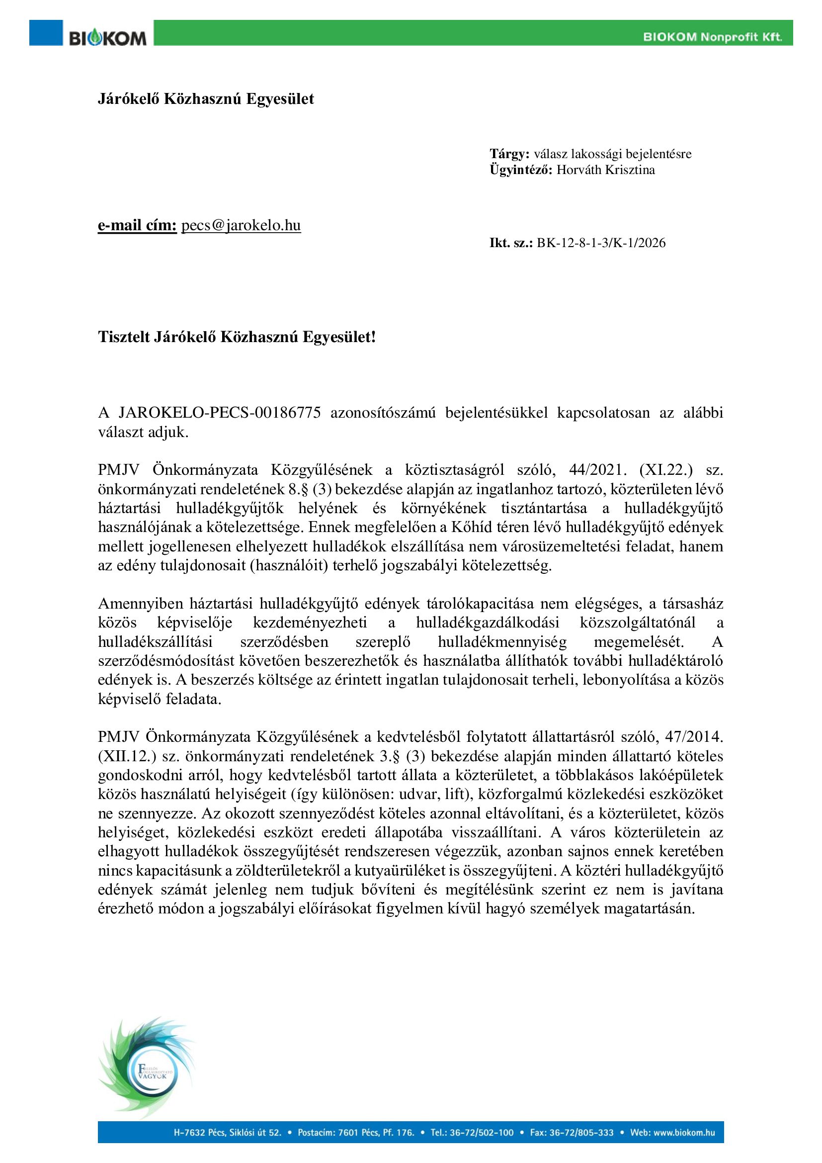Megoldást jelenthetne valamelyest, ha további szemeteseket helyeznének ki, figyelmeztető és/vagy tájékoztató táblák a szemetesek területén, és a közterület szabályokat be nem tartásának szankcionálása.