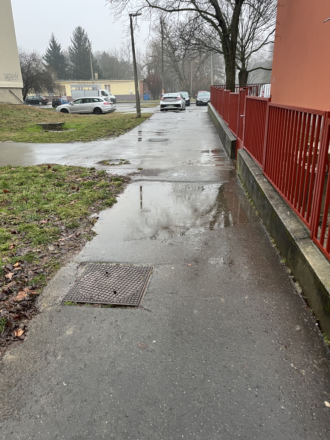 A Cseperedő bölcsi előtti járdán a képen látható módon összegyűlik a csapadék. Köszönöm!