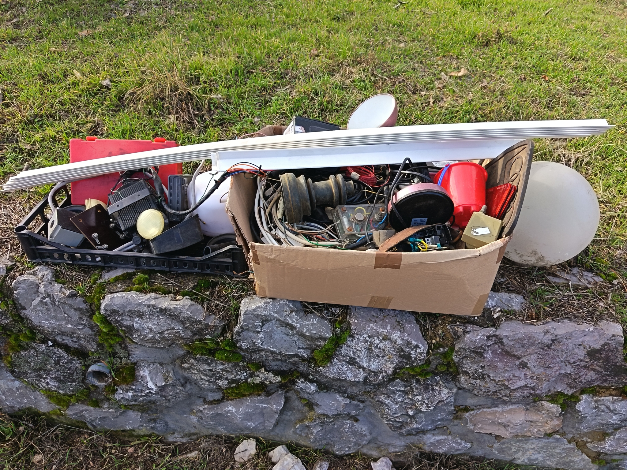A havihegyi templom parkoló támfalára újabb kitett elektronikus hulladék keletkezett. Az előző elszállításra került köszönjük szépen.