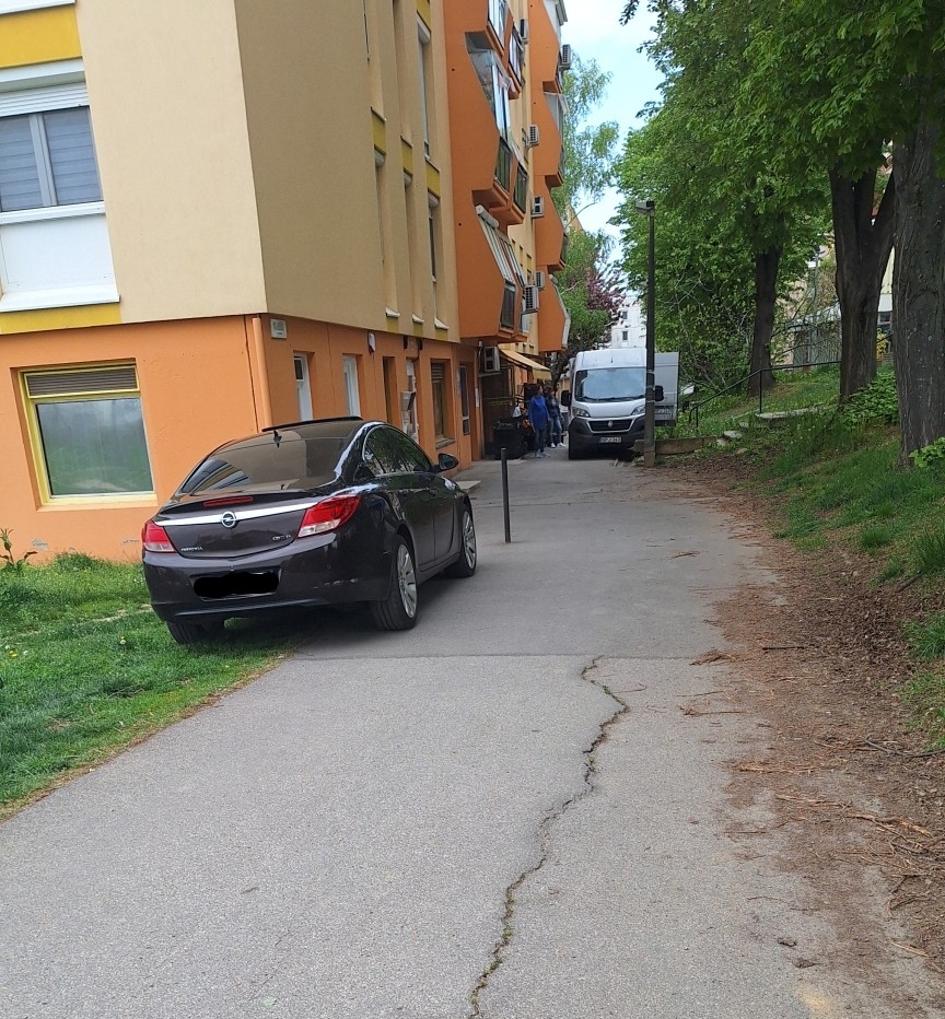 Az autó tulajdonosa nem árut szállit, nem mozgásban korlátozott embernek segít. A parkoló tele üres hellyel.