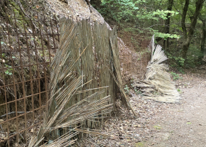 Városközeli erdei útvonalon leszakadt dekornád miatt kilátszó betonvas