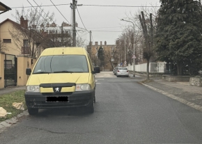 Teljesen lekopott, kifakult a behajtani tilos tábla a Naspolya köz tetején.