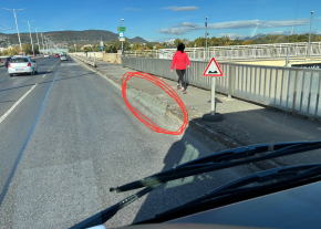 Pilisborosjenőn a Budai út és Bodza utca kereszteződésben mély kátyú.