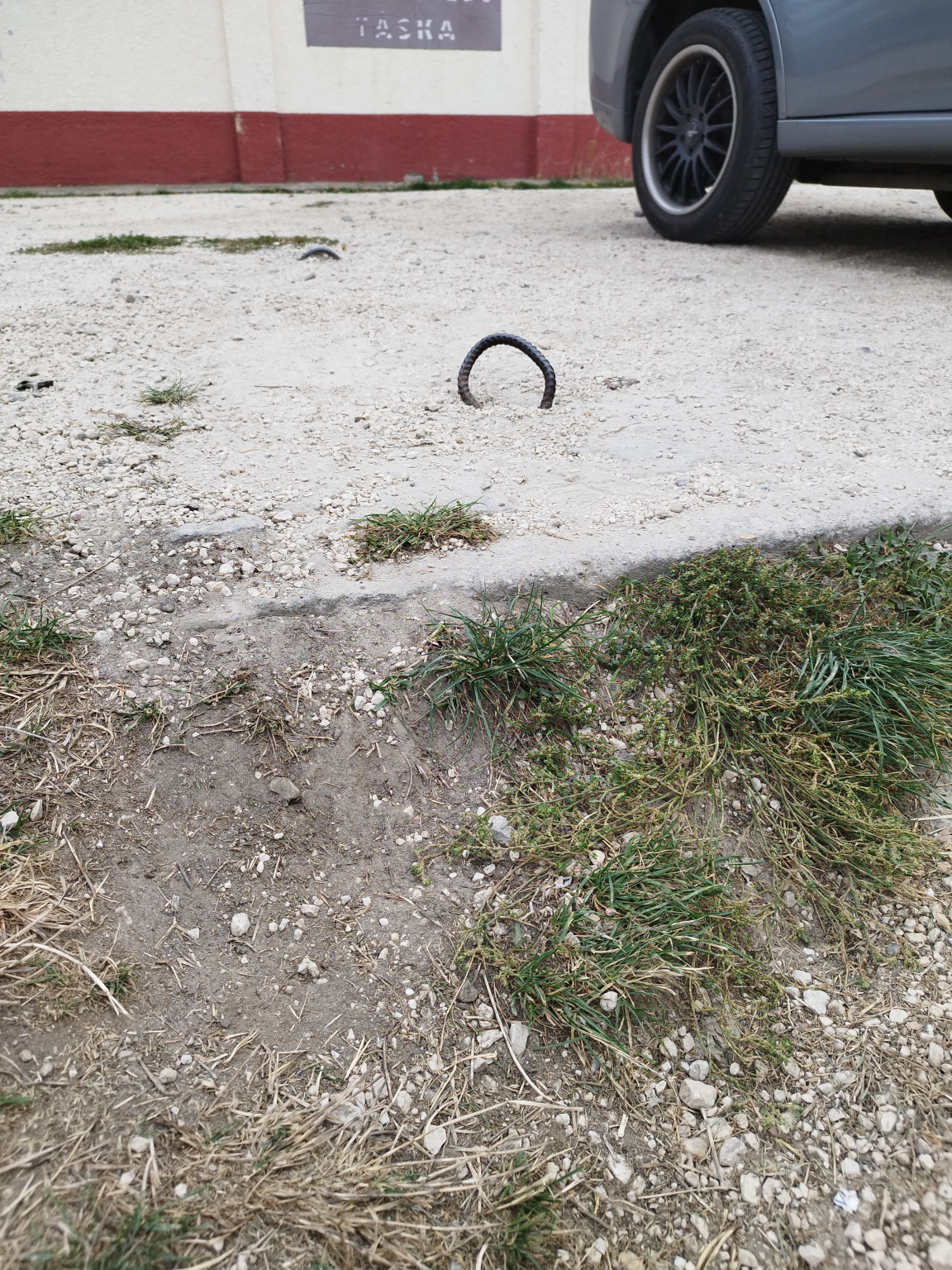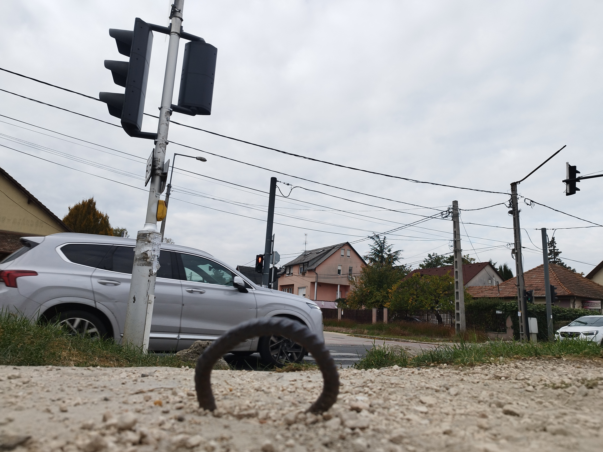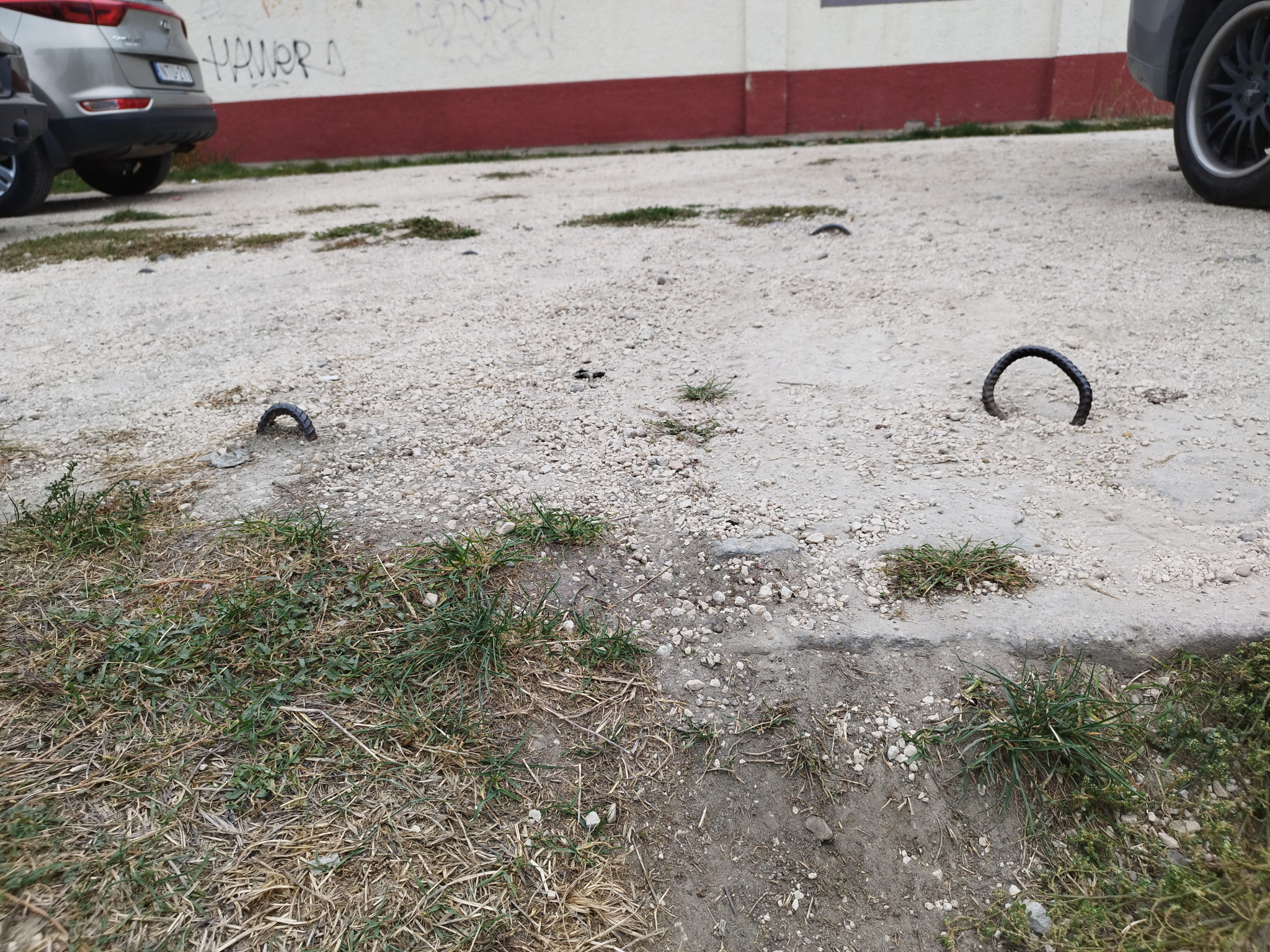 Kérem, hogy a parkolóból a zebrához menet lévő vas buktatókat kalapálják le síkba. Nagyon veszélyes.