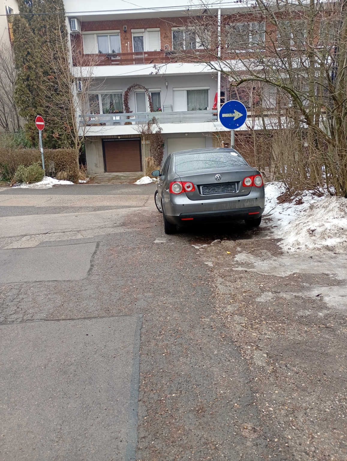 Kb. 10 napja áll a képen látható rendszám nélküli autó szabálytalan helyen a Váci Mihály utca és a Széchenyi utca sarkán Pomázon.