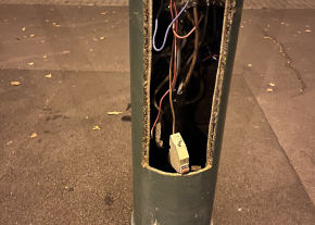 A kandeláberek még mindig nem világítanak a téren (lassan egy éve).
