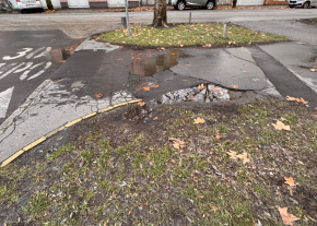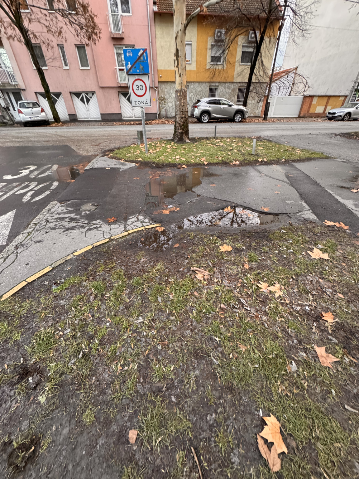 Szegeden, a Makkoserdő sor és a Cső utca találkozásánál a kerékpárúton van egy nagy kátyú.