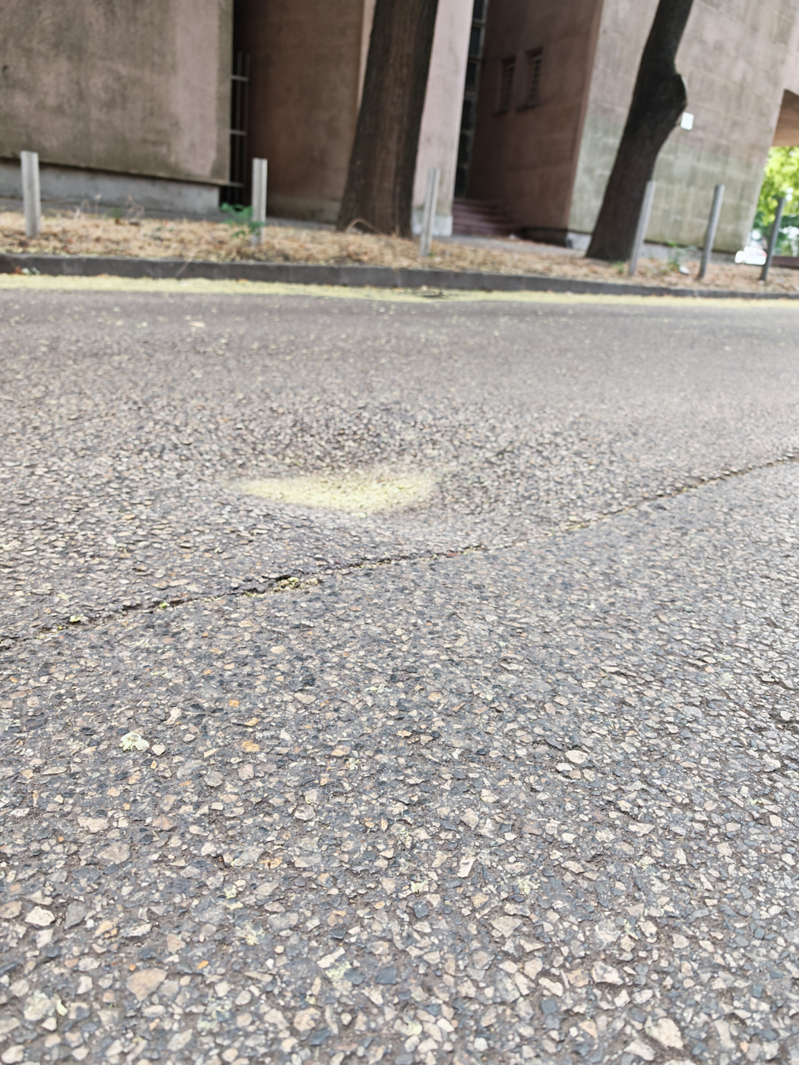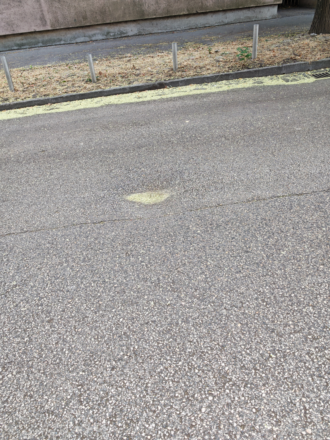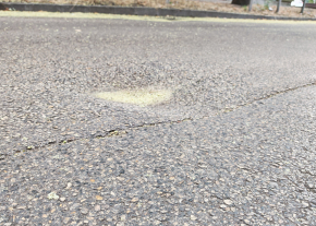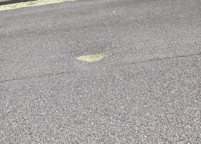 Szappanos utca 5/A , 5/B határán az úttest közepén kb 10 cm mély, 40 cm átmérőjű kátyú.