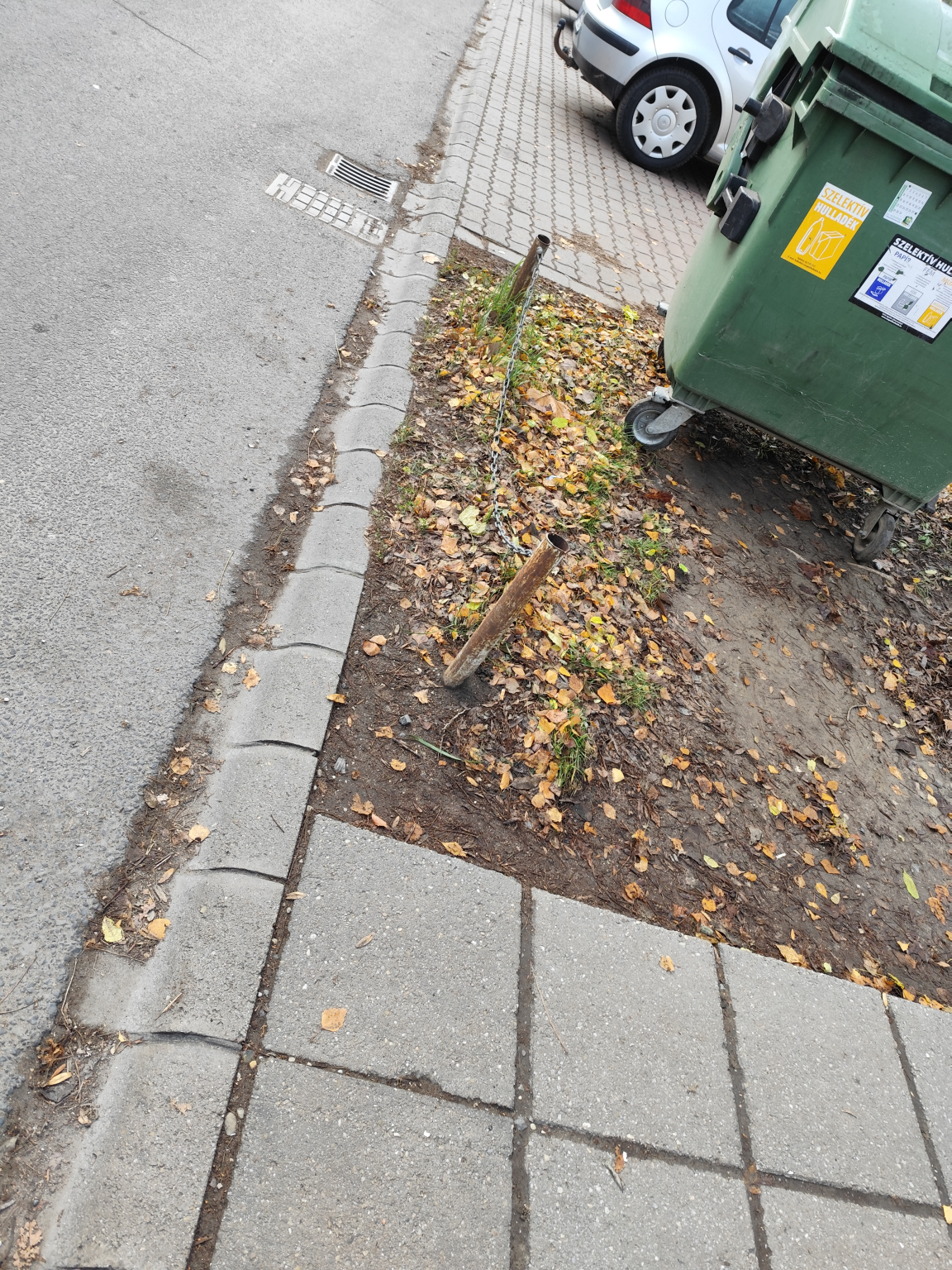 A Makkoserdő sor 11. megmaradt rövid pollereit a lánccal együtt eltávolítottuk, a lakosok „alkotása” lehet és az oszlopok állapotából ítélve több mint 10 éve ott volt a helyszínen....