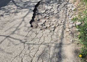 Kertész utca 24. előtt nagy kátyú, esős időben nem is látható, balesetveszélyes.