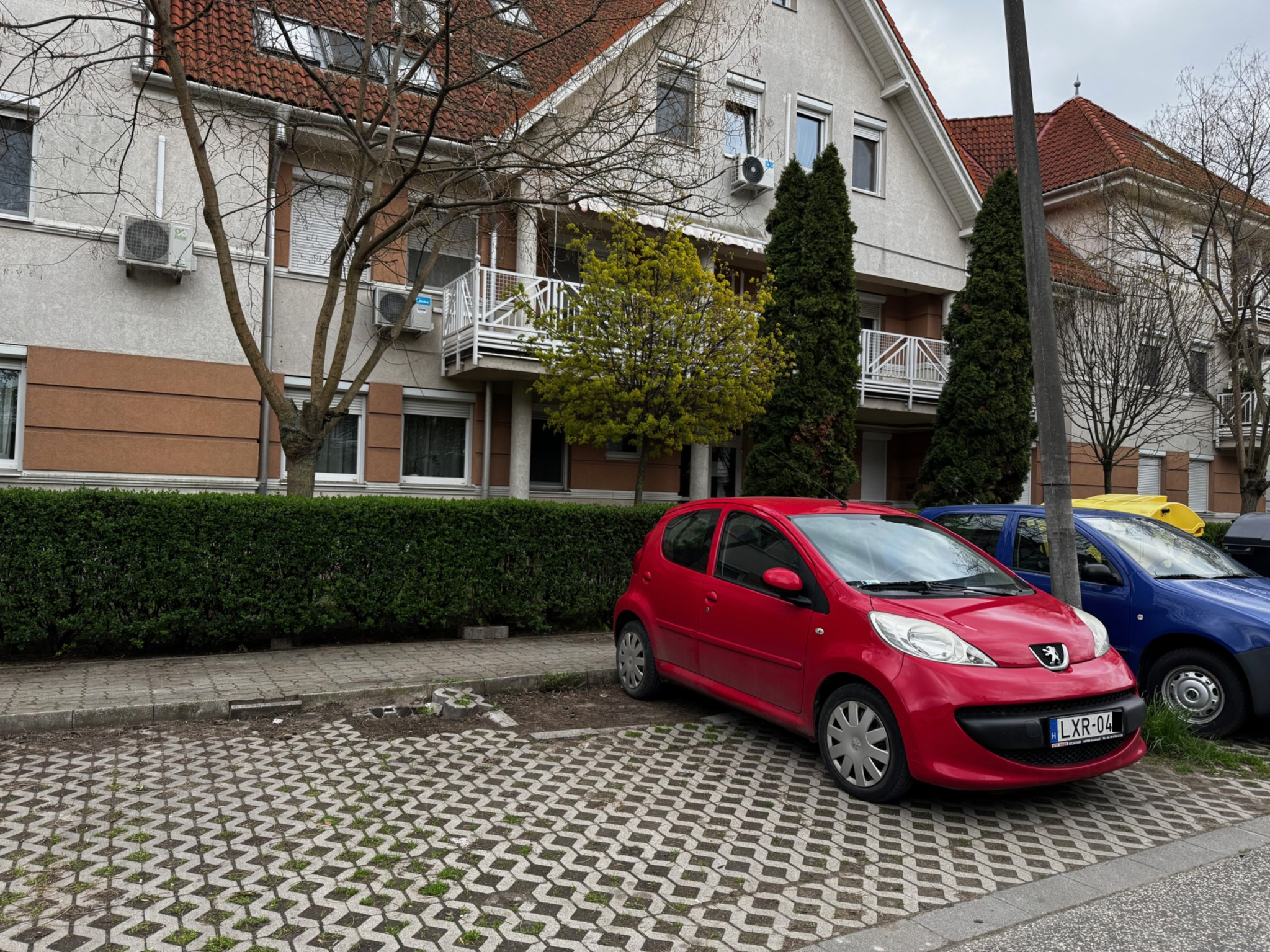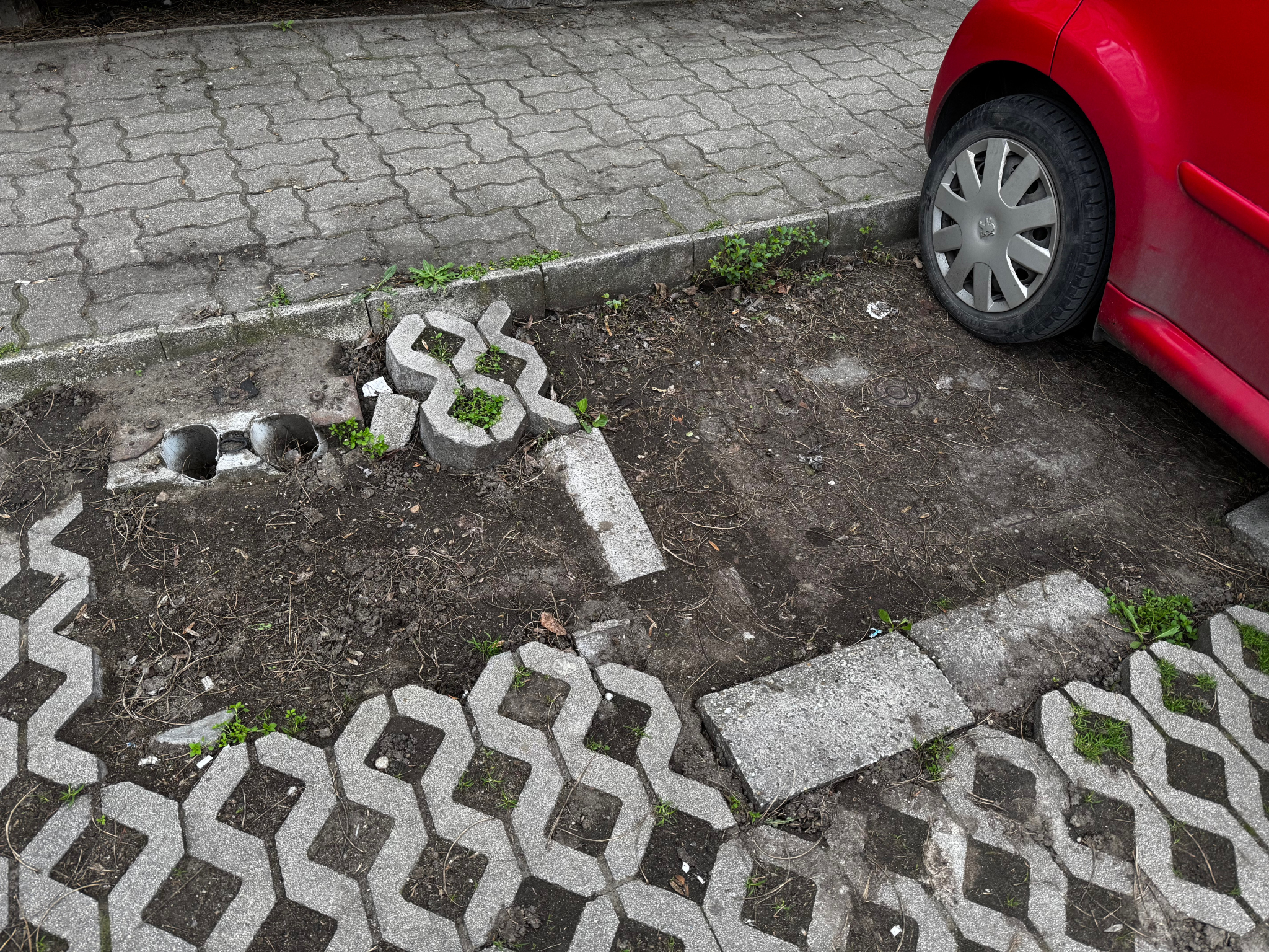 Pollerek kihelyezését kértük az önkormányzattól. A fedlapon tilos parkolni, nem része a parkolónak.