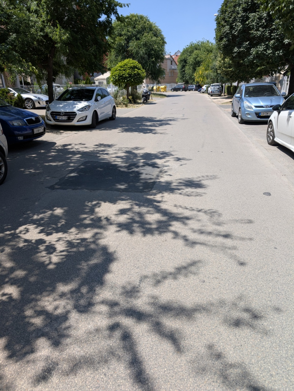 Az úton majdnem középen, este alig látható, de nagy kárt tud okozni az autóban akár 30-as sebességgel is.