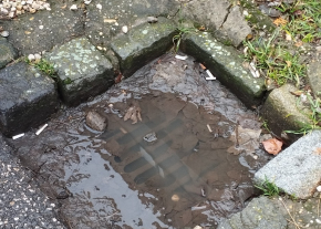 Nem folyik le a víz a lehullott falevél miatt, eltömődött és áll a víz az utcán.
