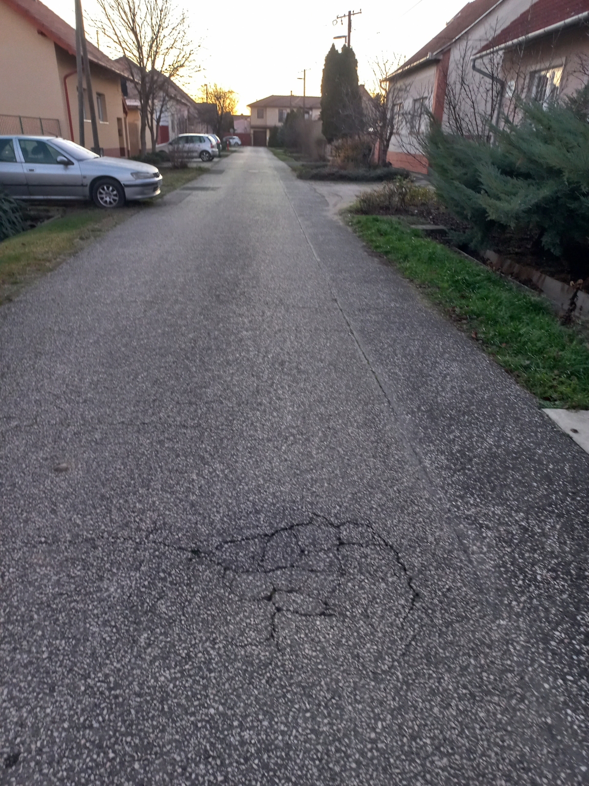 Szegeden, a Csantavéri utca 9/b előtti úttesten található egy mélyedés.
